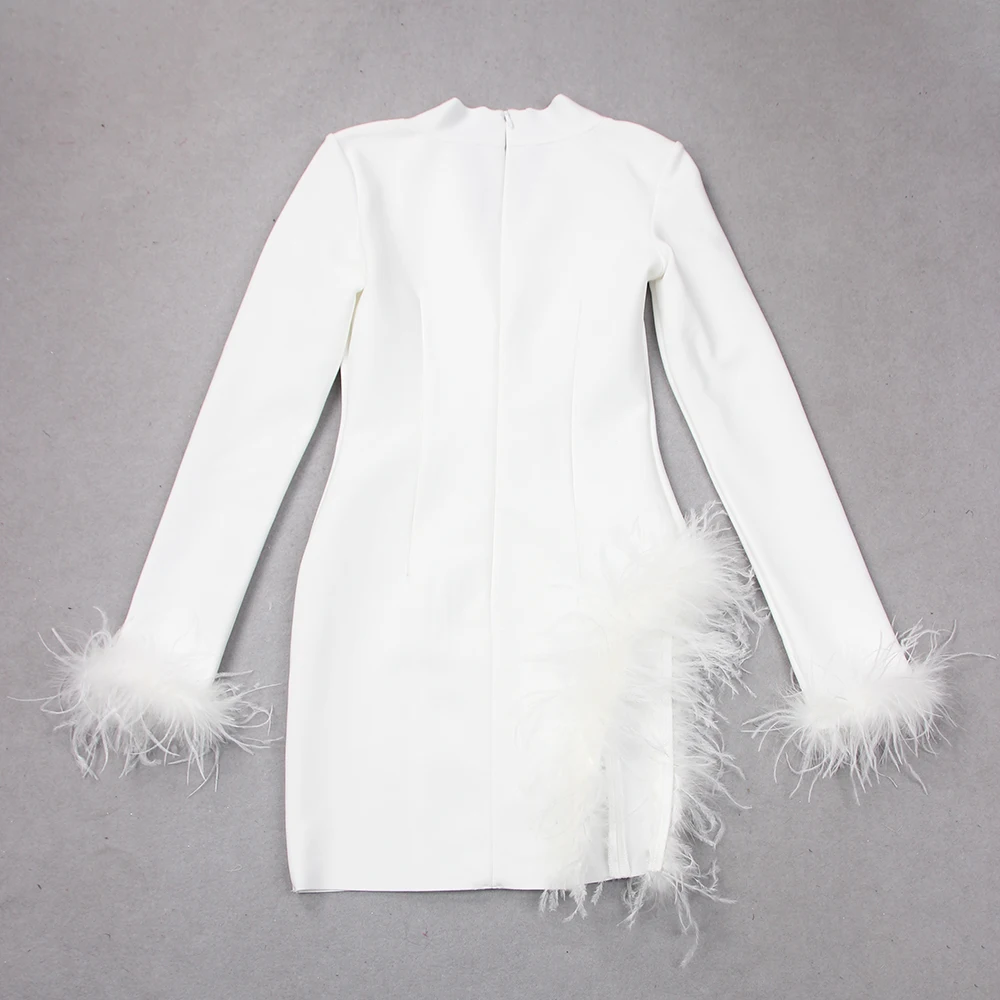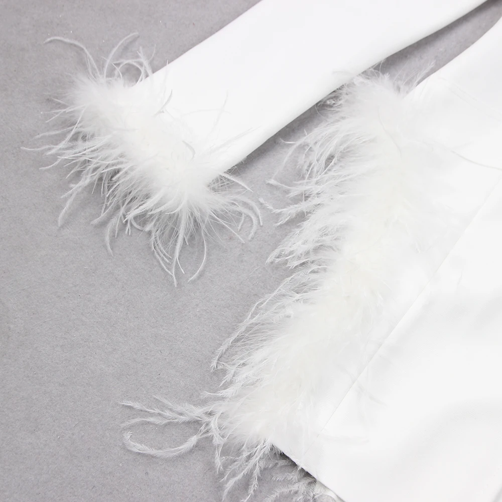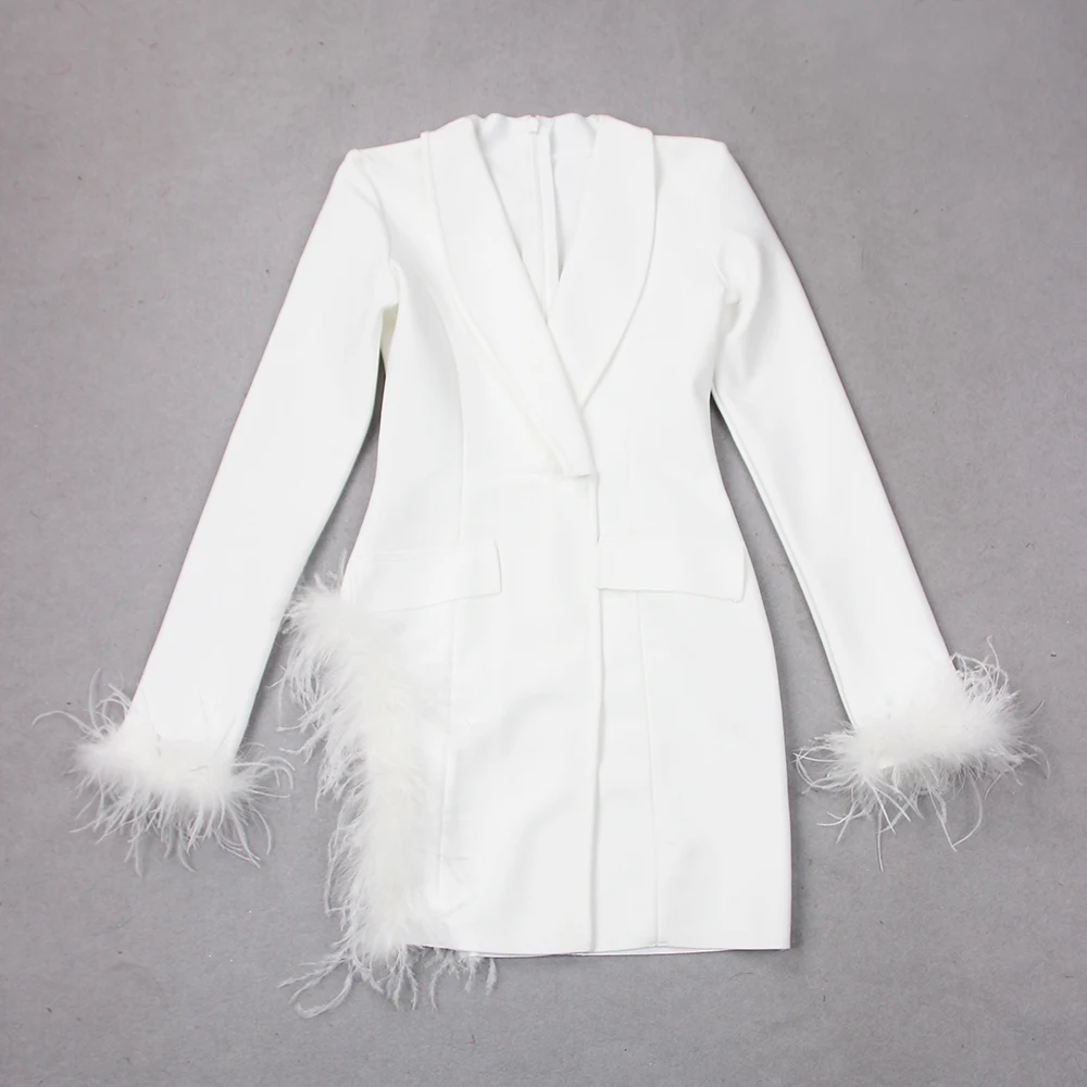 Trendy Mini Bandage Blazer Dress Womans Elegant Knitted Sexy Blazer Dresses with Feather