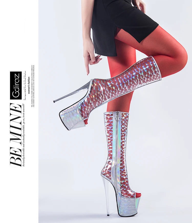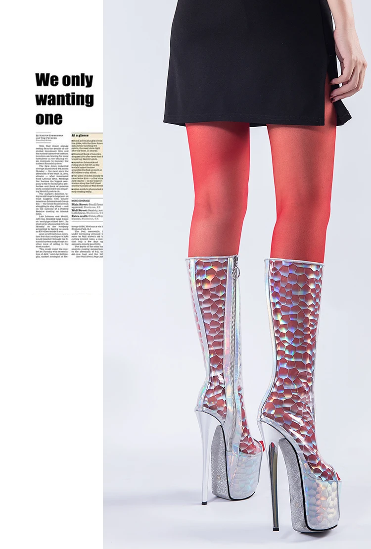 Trendy peep toe platform shoes women heels sexy zip-up short boots 20 cm ladies pole dance shoes women
