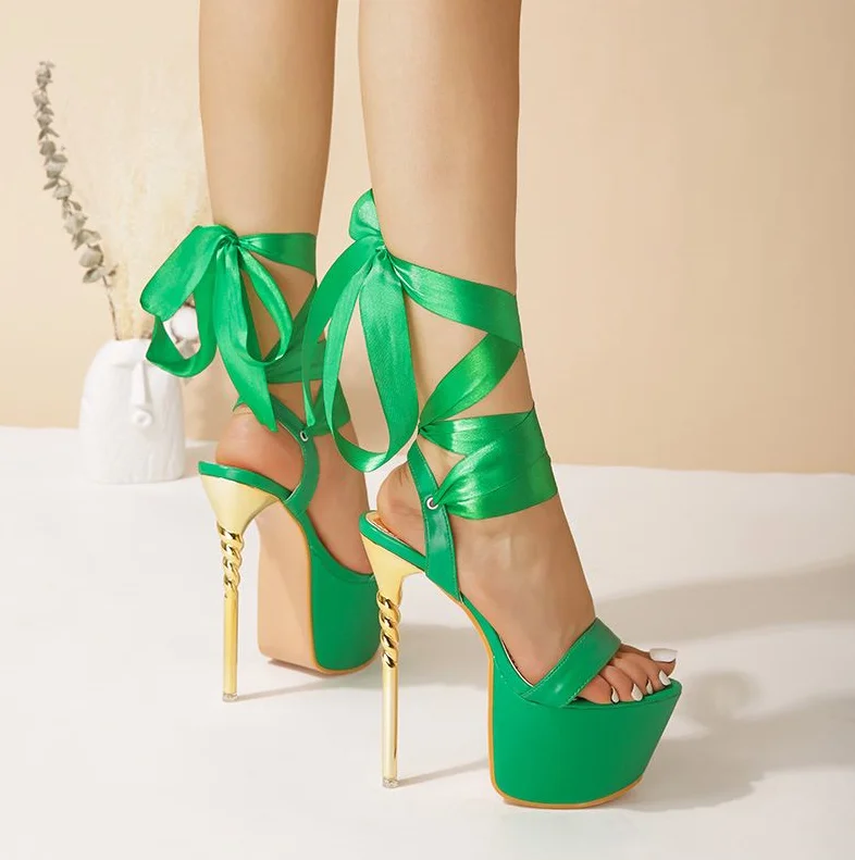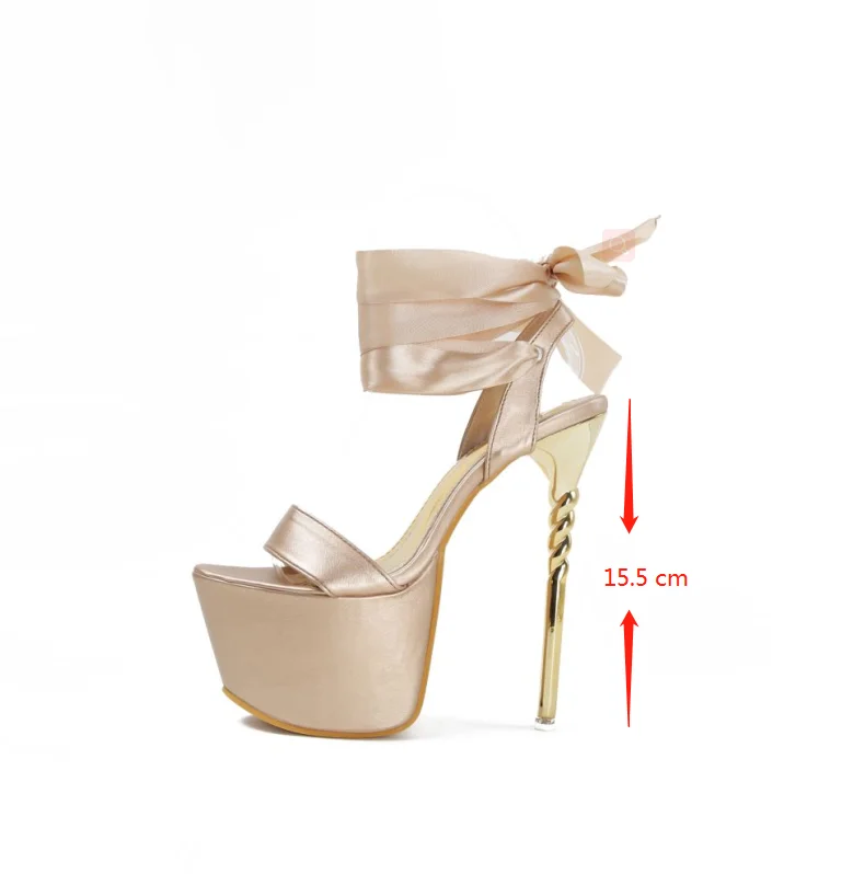 Trendy Silk Strappy High Heels 15 CM Strippers Heels Platform Shoes Ladies Pole Dance Trendy Women Sandals