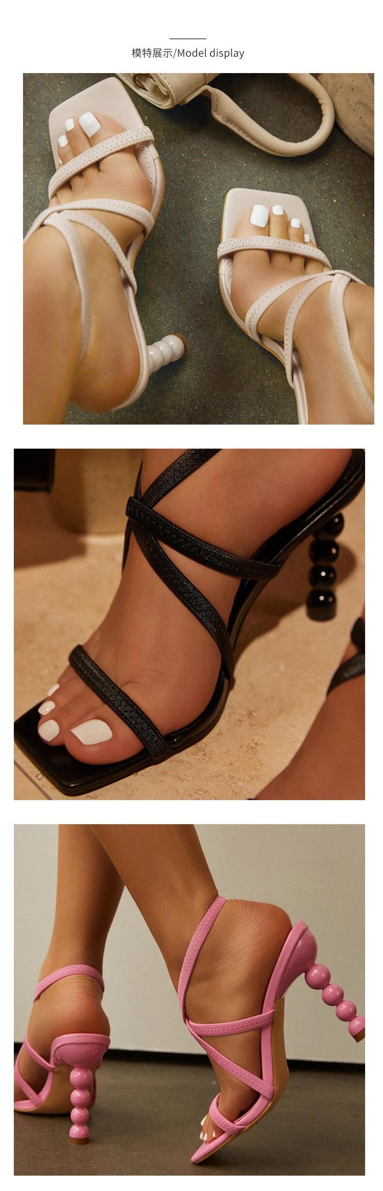 trendy stiletto high heels size 35-42 shaped heels elastic slip-on straps comfortable sandals for women