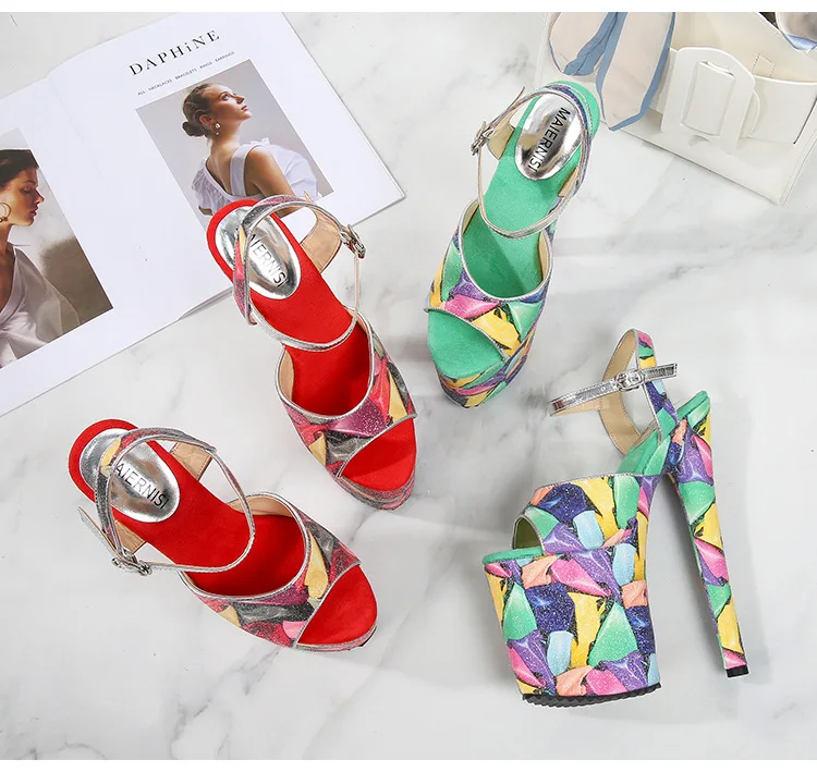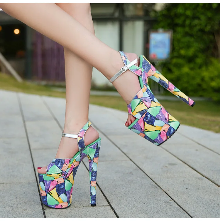 Trendy Summer Heels Sexy 20 CM Stilettos High Heels Ankle Straps Platform SandalsPole Dancing Shoes Women