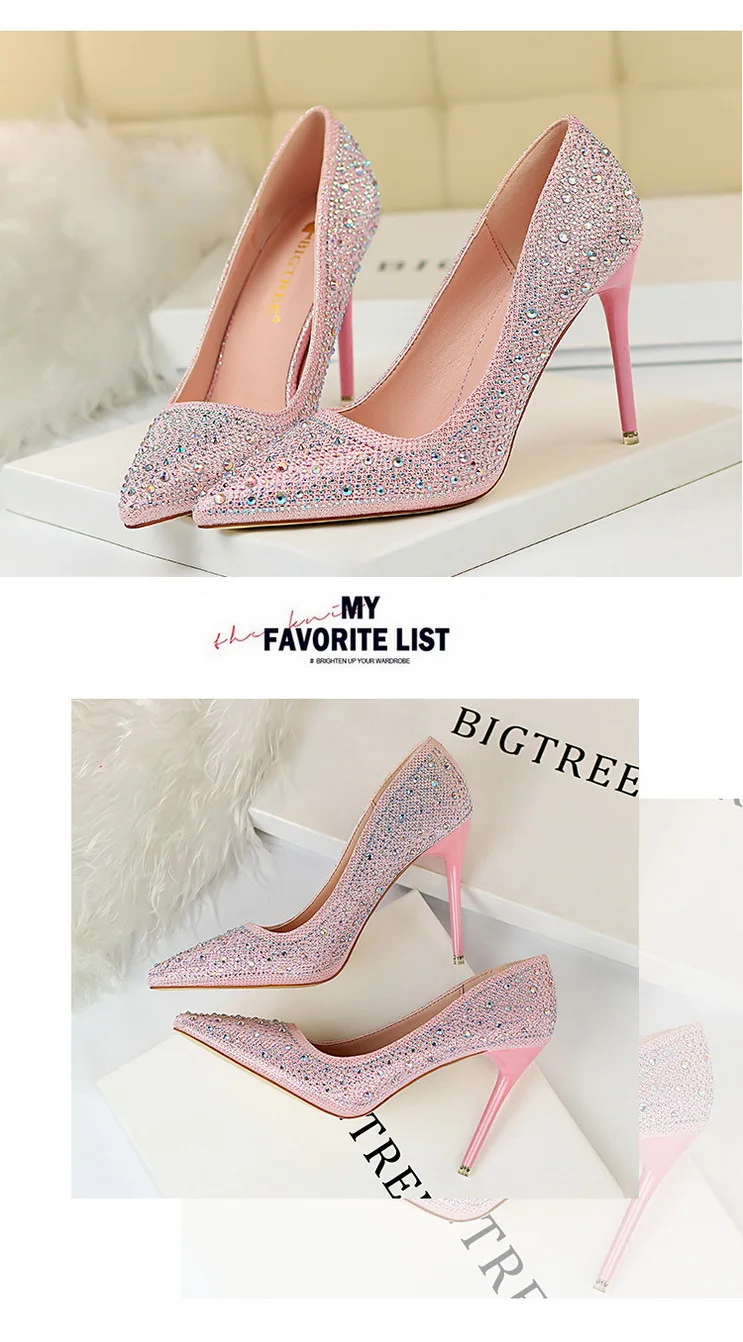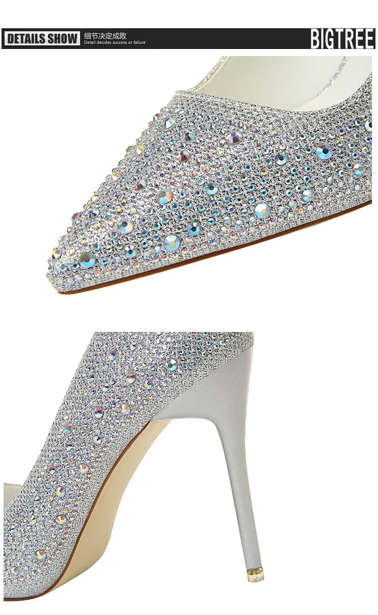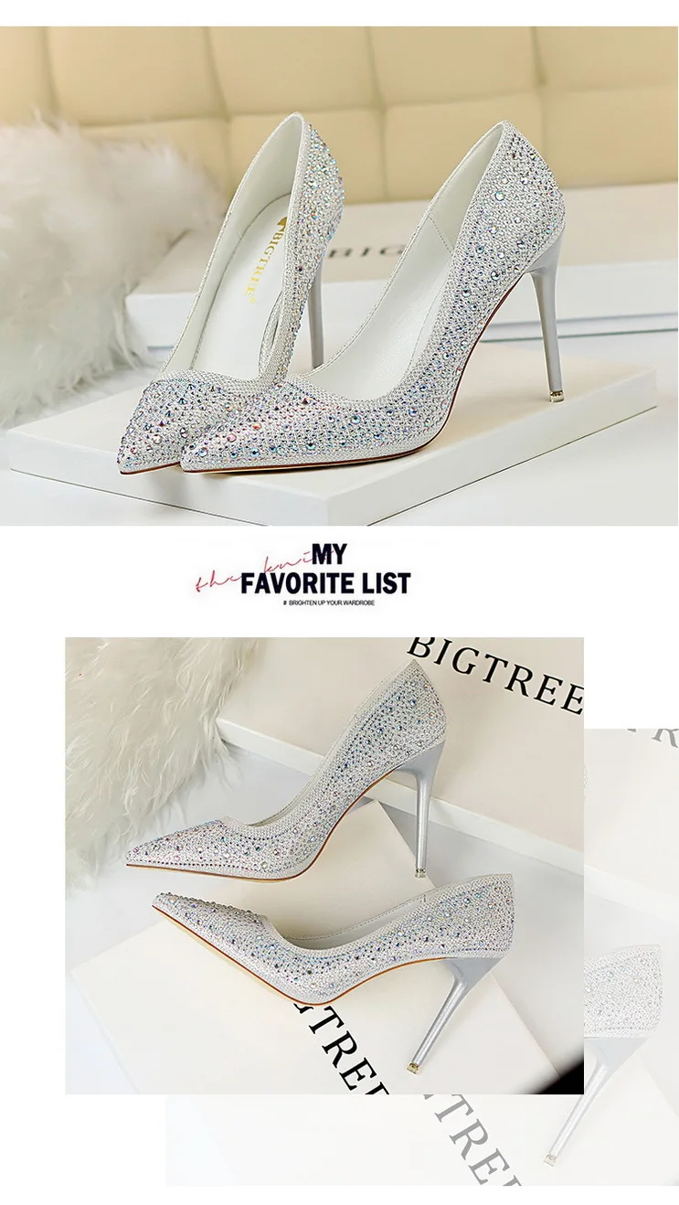 Trendy Summer High Heel Shoes for Ladies Strippers Pointed Pumps Wedding Wear Diamond Women Dress Shoes Luxury