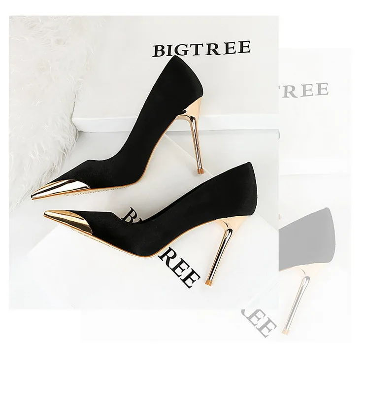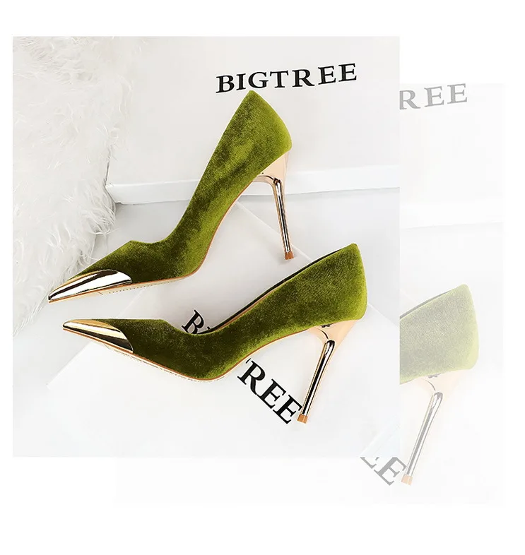 Trendy Velvet High Heel Shoes for Ladies Pointed Stilettos Pumps Wedding Wear Women Dress Shoes Luxury