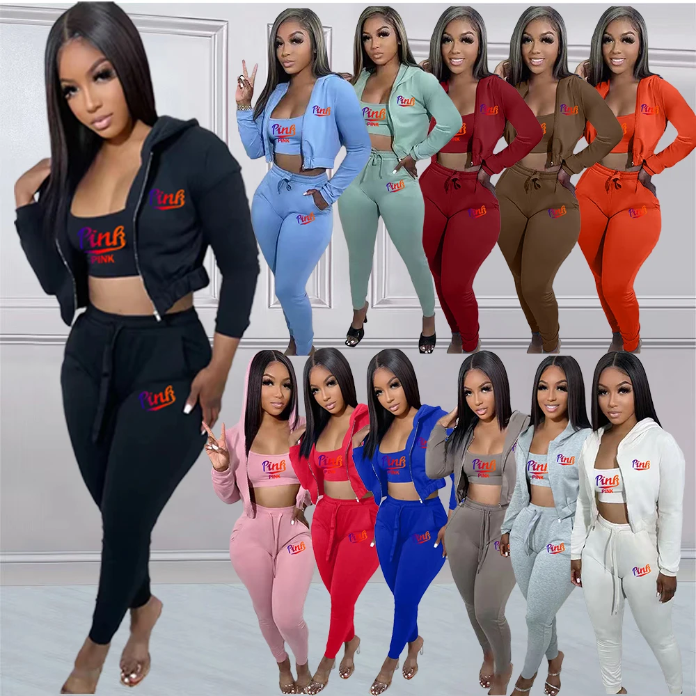 Trendy Women Clothes Casual Print Gradient Patchwork Sweatsuit Hooded Collar Long Sleeve Three Pieces
