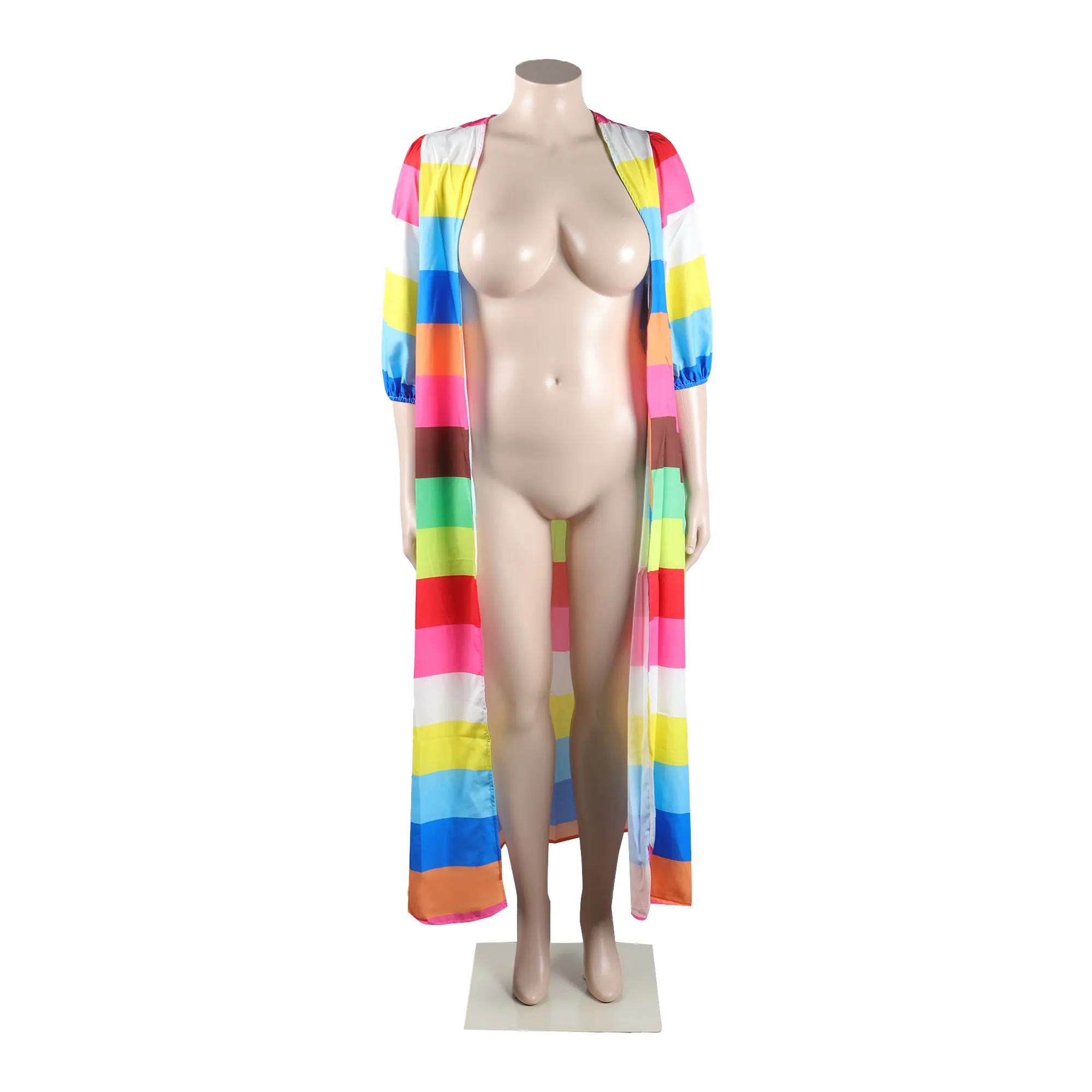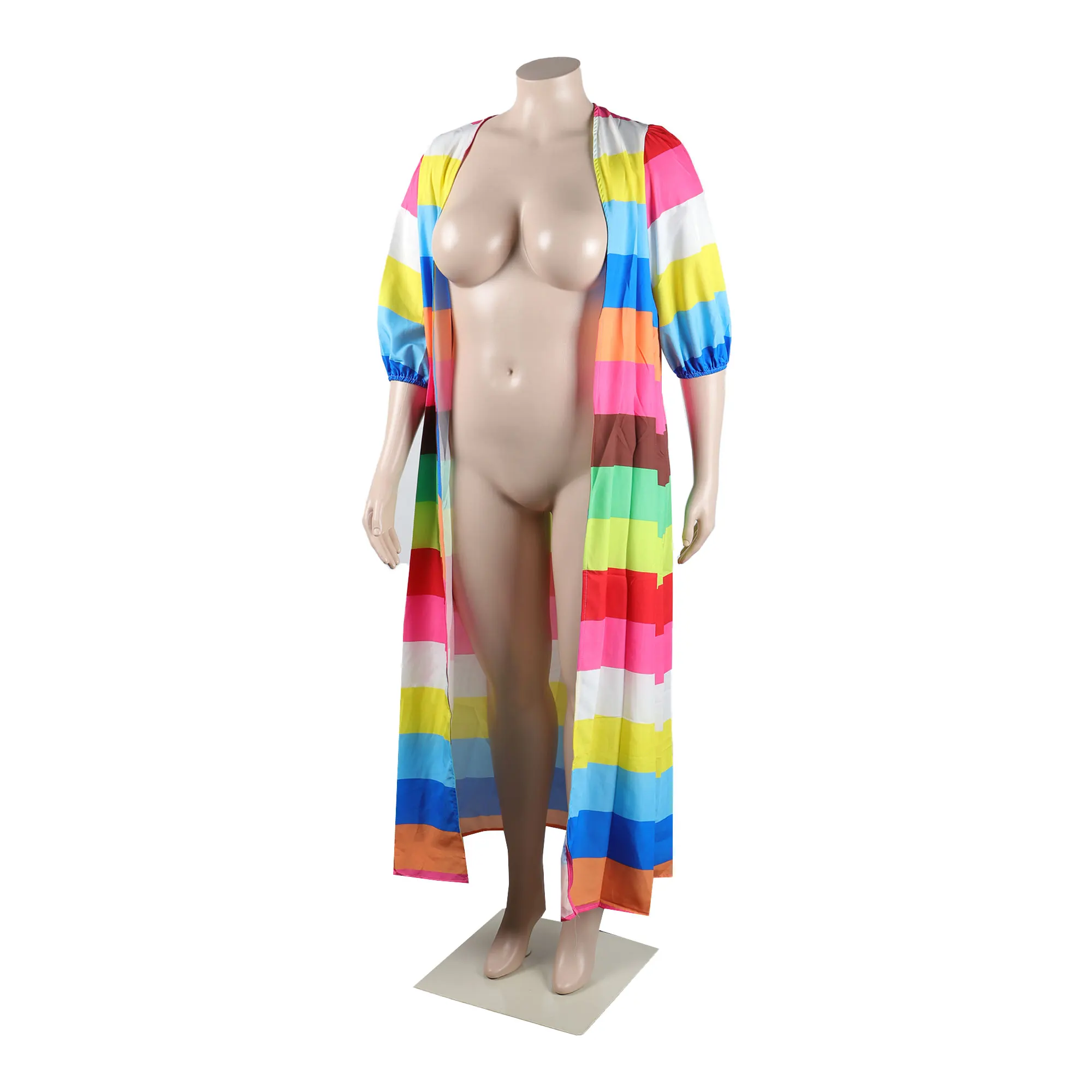 Trendy Women Clothes Oversize Positional Print Rainbow Long polyester Cardigan Jacket