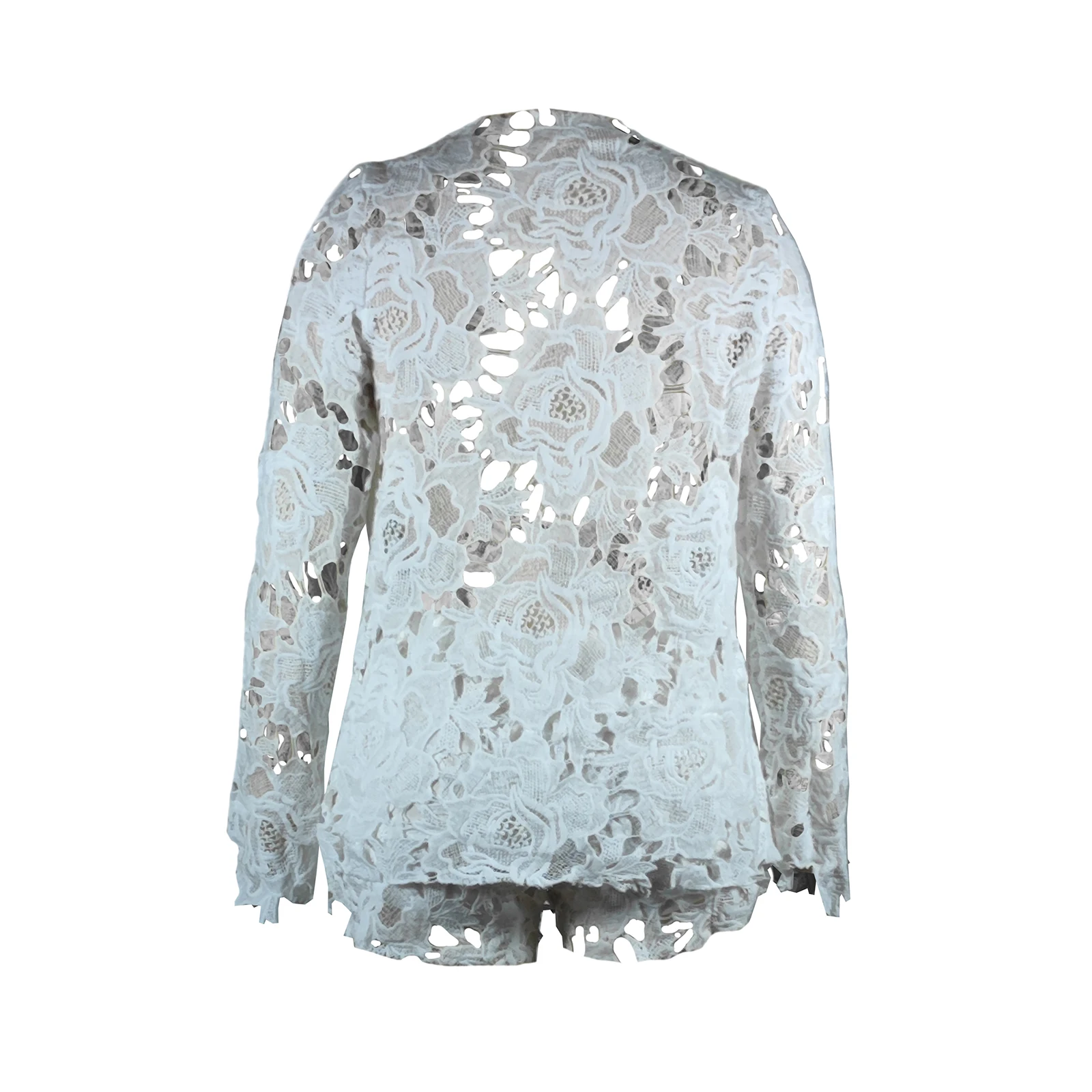 Sexy See Through Long Sleeve Lace Trim Cardigan & Double-layer Shorts Set