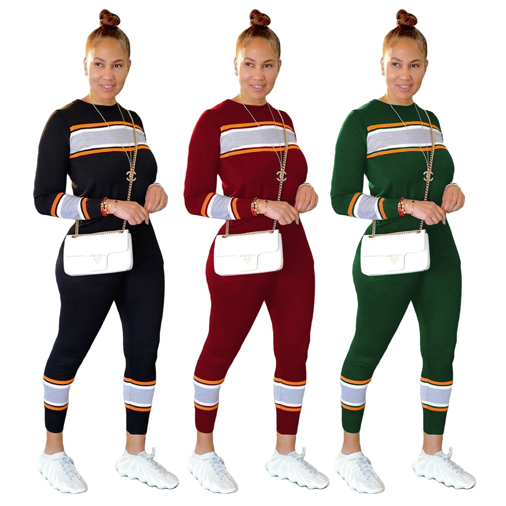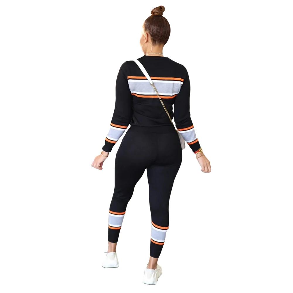 Trendy Women Clothes Women's Casual Solid Color Sweatsuit Pullover Crewneck Colorblock Jogger Pants Two Piece Outfit Tracksuits