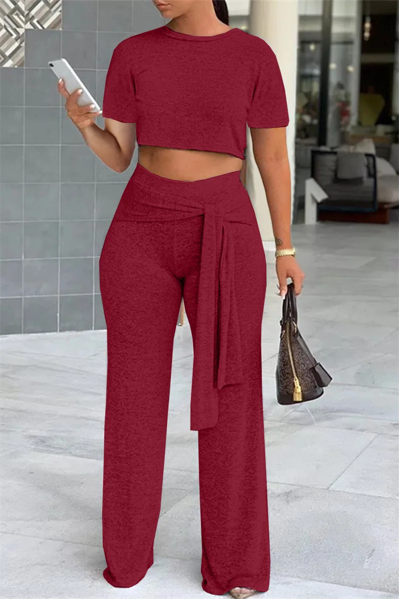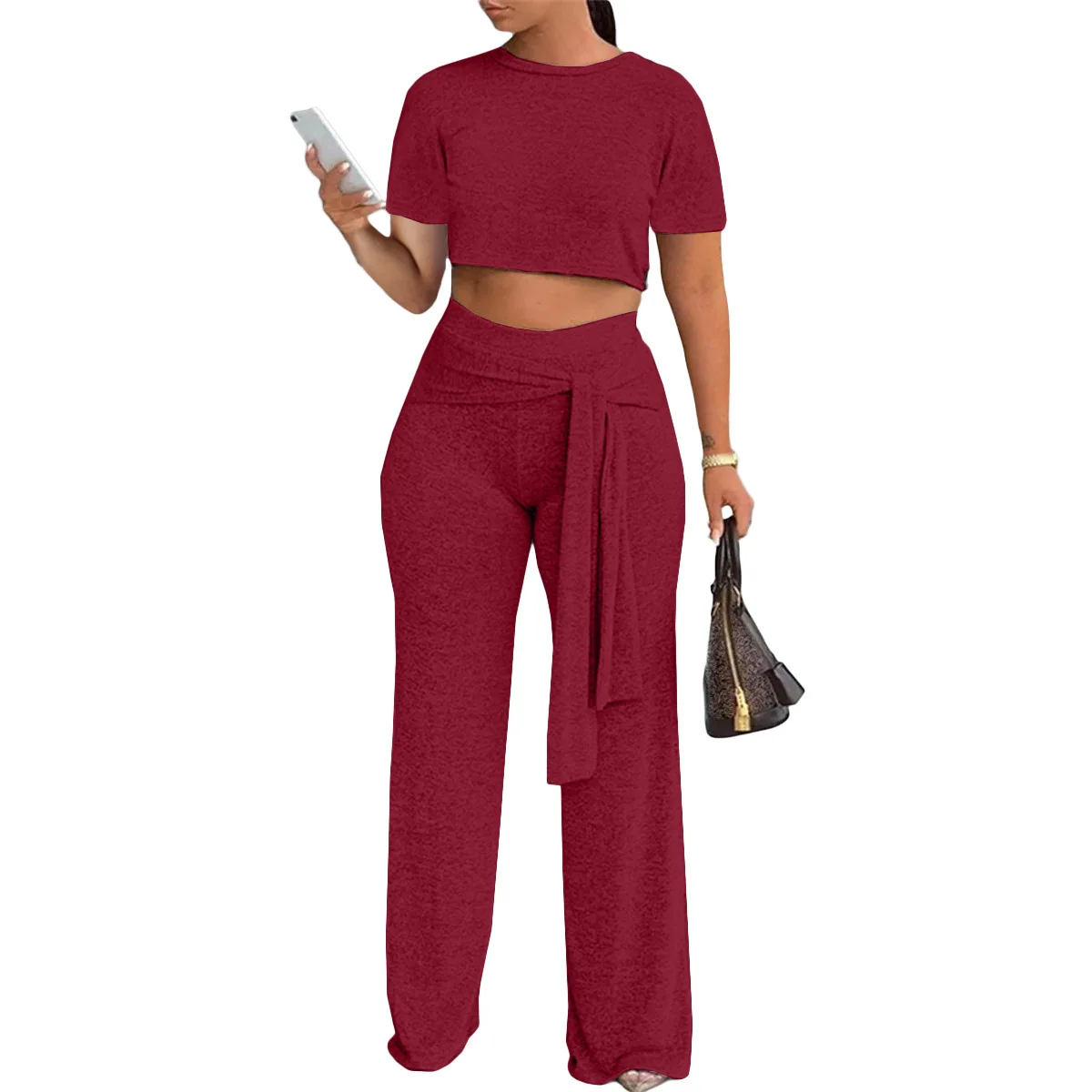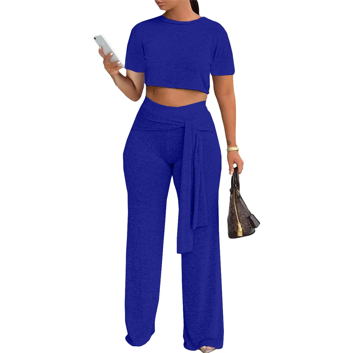 Trendy Women Clothes Women's Fashion Casual Short Sleeve Crop Top Wide Leg Pants Two-piece Set