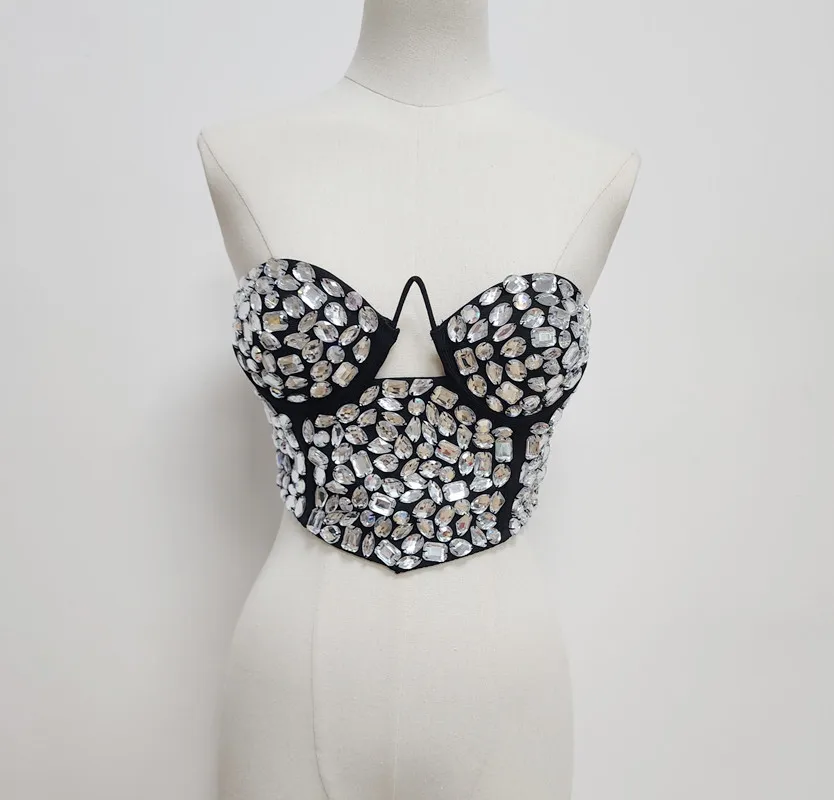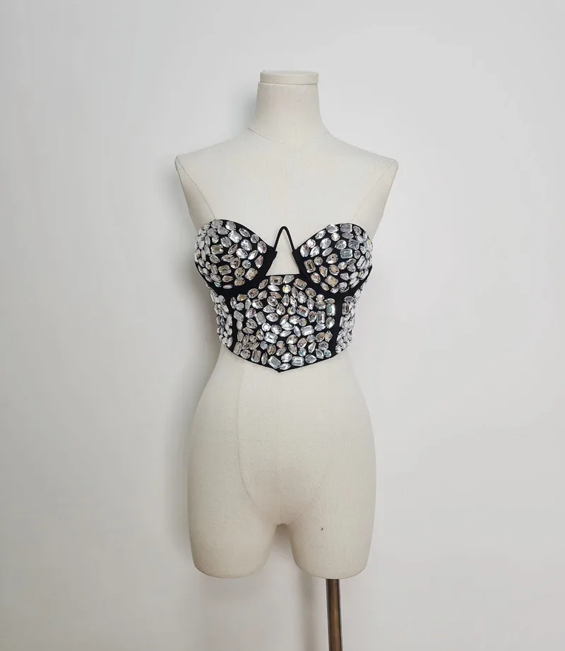 TS2250 High Quality Off Shoulder Sexy Clothes Corset Tops For Women Short Crystal Tops Rhinestone Elegant