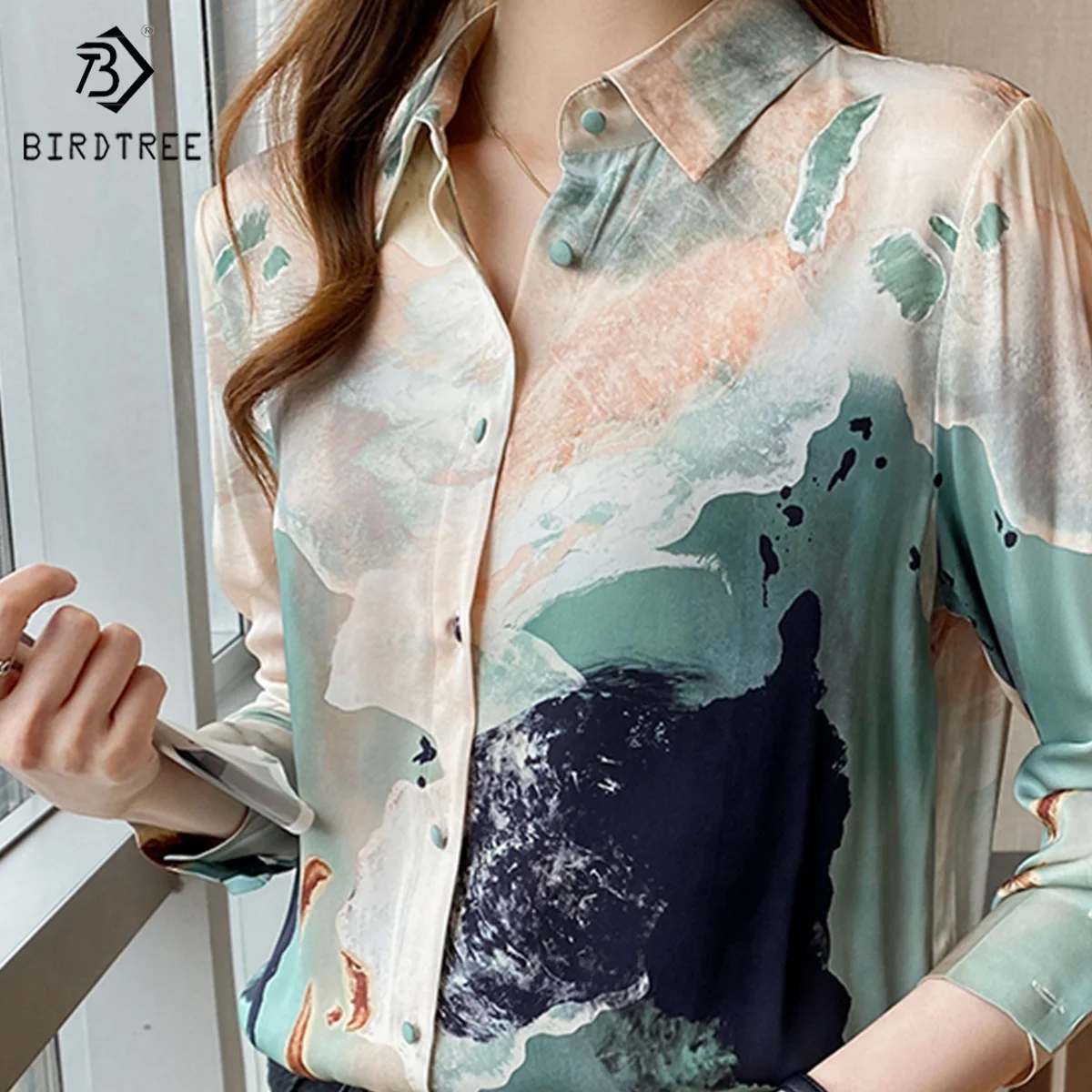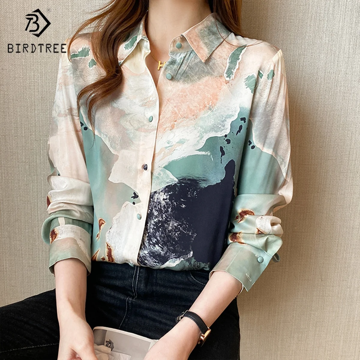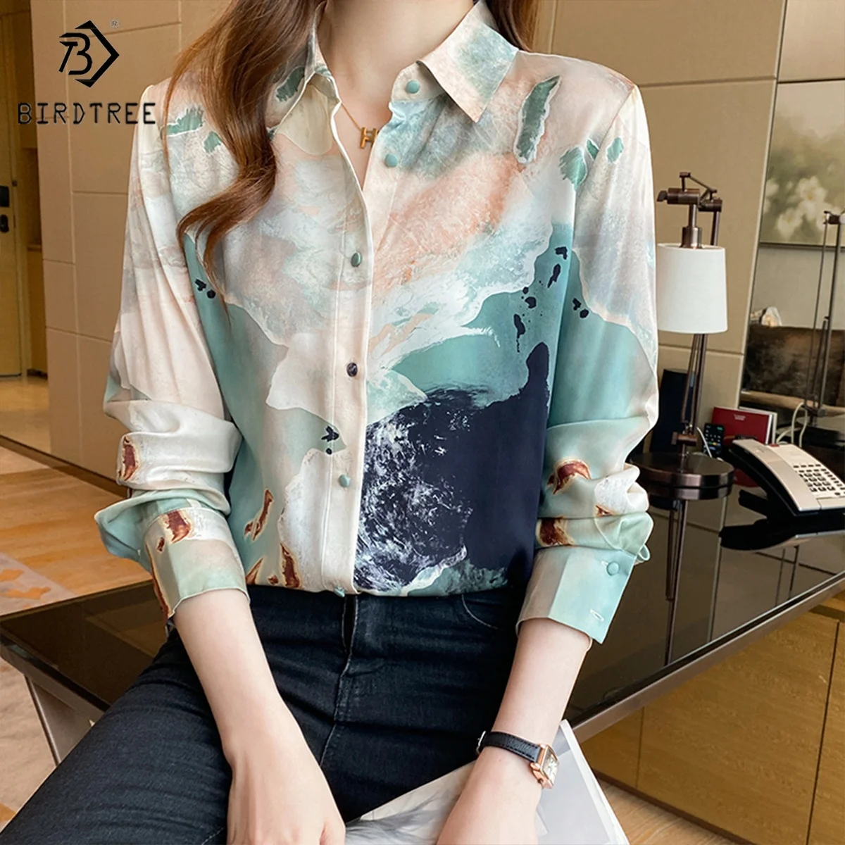 Turn Down Collar Printing Shirts Spring Female Loose Blouses Female's Workwear Interview Long Sleeves Tops T33115X