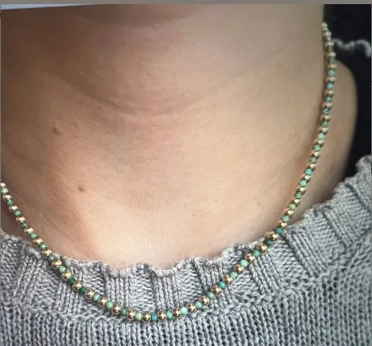 Vintage Women Jewelry 14k Gold Filled Bead Necklace Turquoise Beads Necklaces