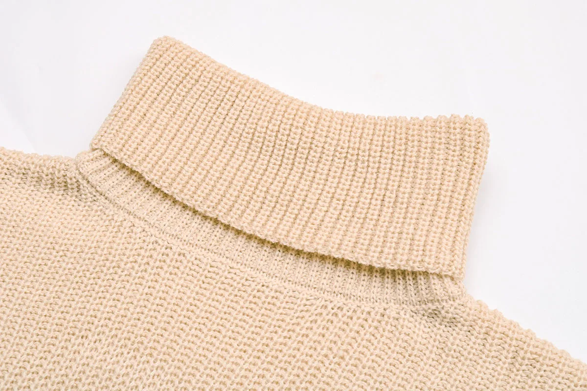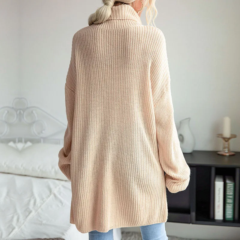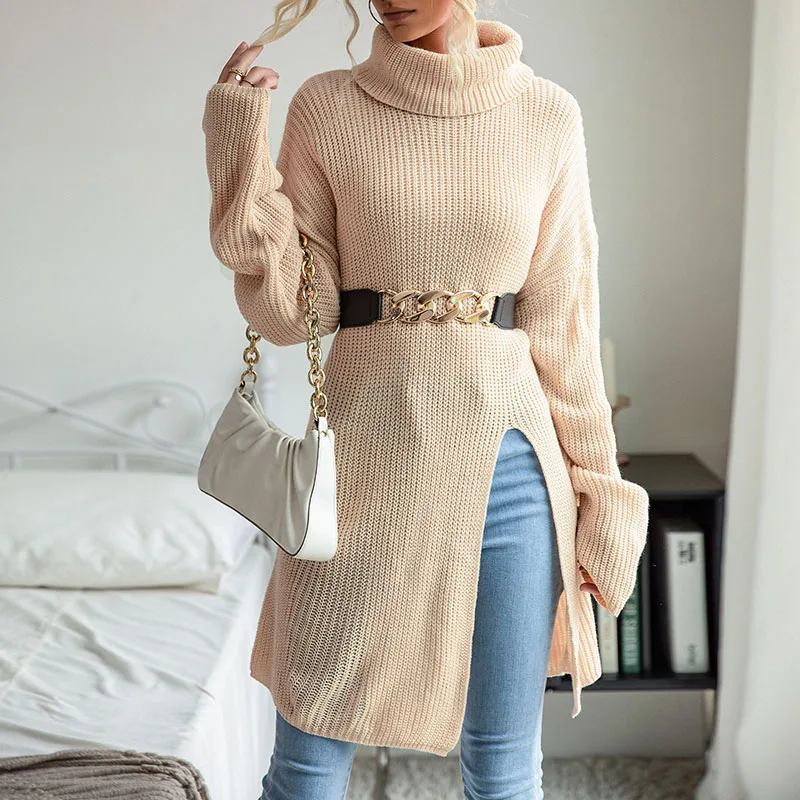 Turtleneck Jumper Women High Turtle Neck Sweater Split Long Design Loose Casual Sweater