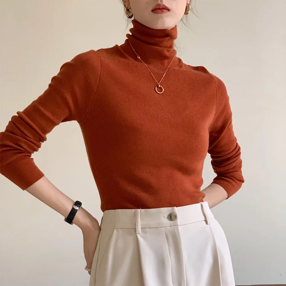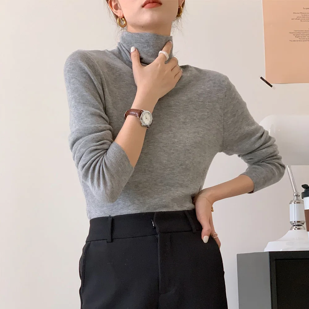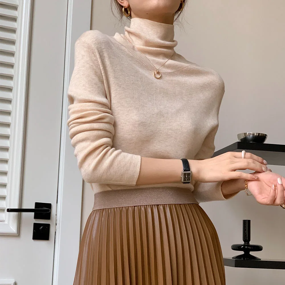 Turtleneck Wool Blended Casual Slim Plain Pullover Knitted Tops Women Sweater Pullovers Lady Sweater