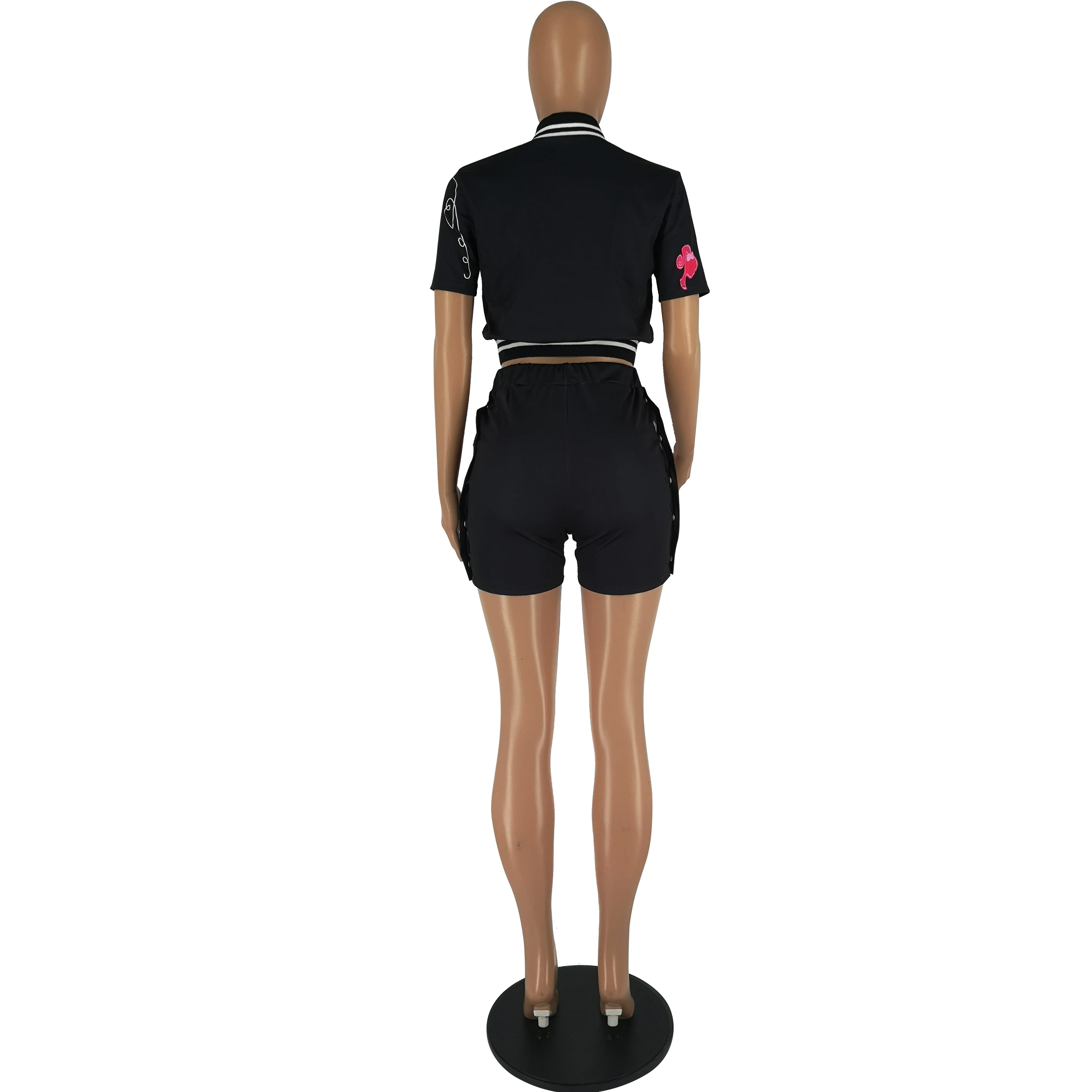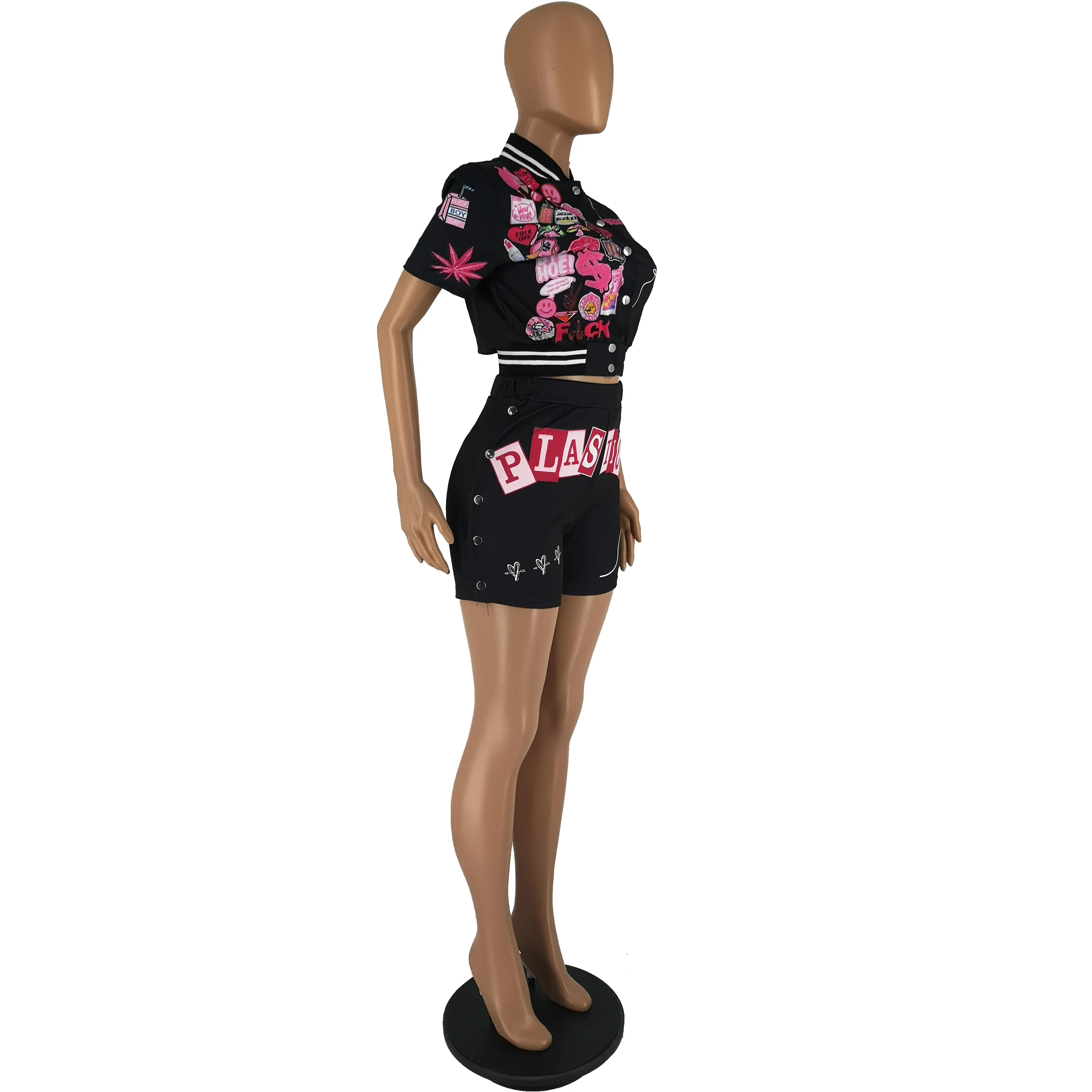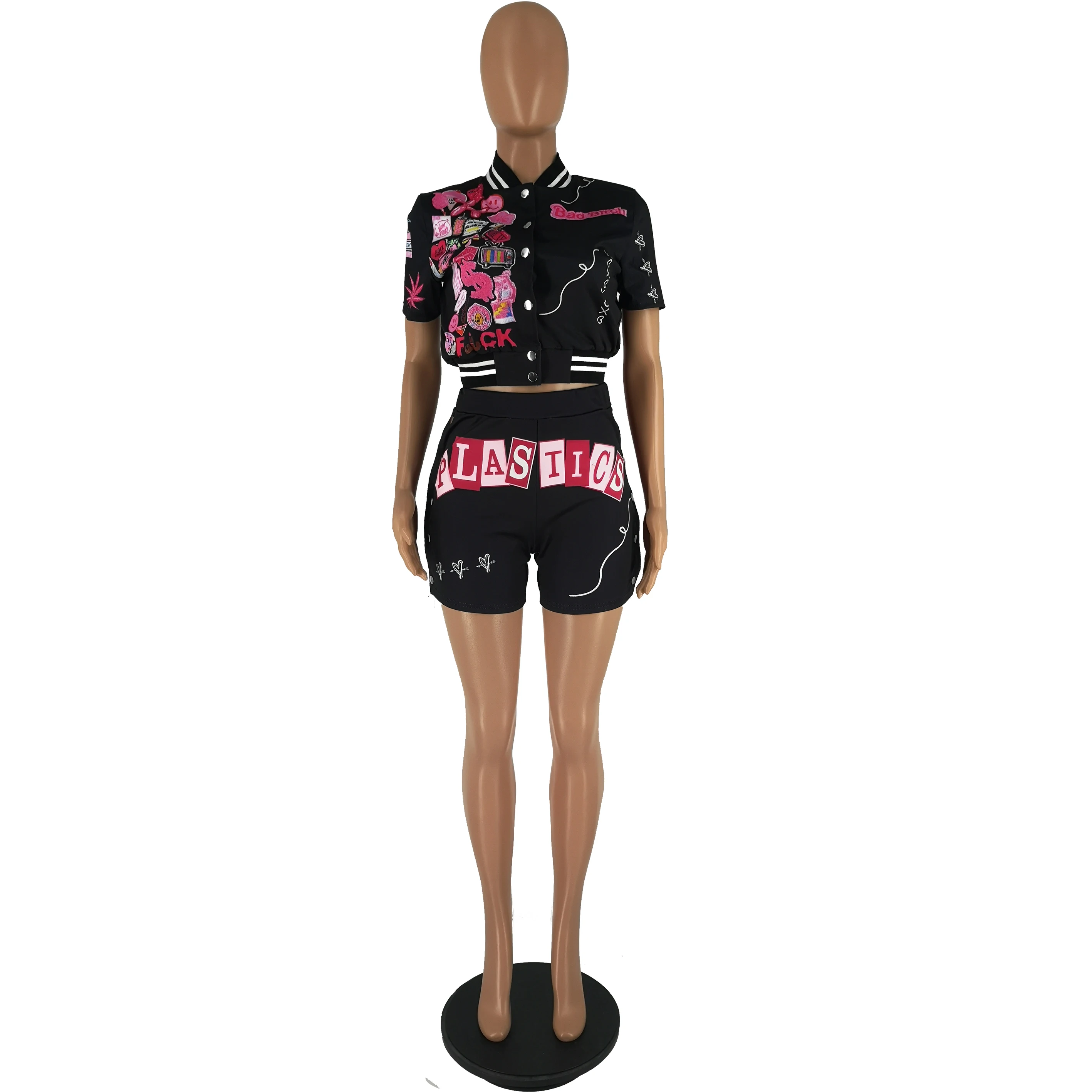Two Piece Set Women Clothing Summer Sexy Street Style Fashion Chic Print Tracksuit 2 Piece Varsity Jacket Jersey Shorts Set