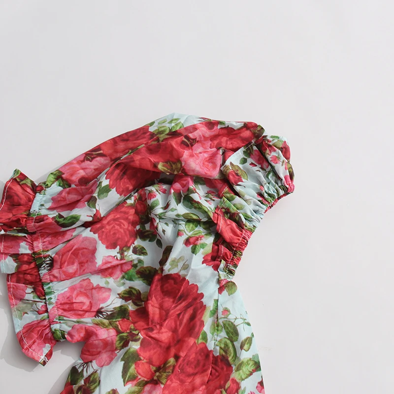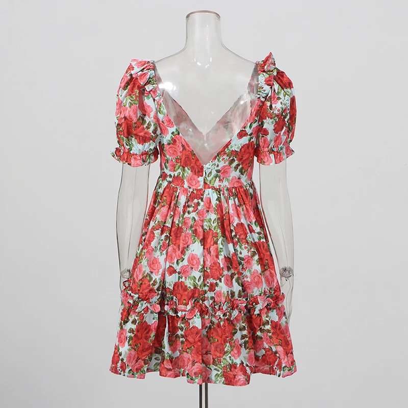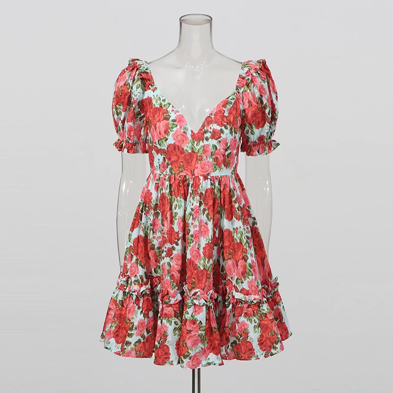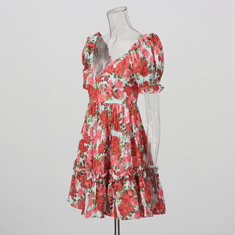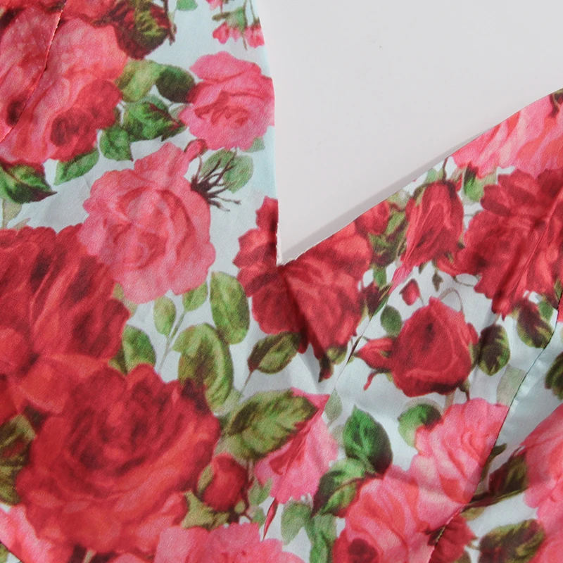 TWOTWINSTYLE Colorblock Spliced Printing Elegant Dresses for Women V Neck Short Sleeves Patchwork Folds Dress Female Clothing