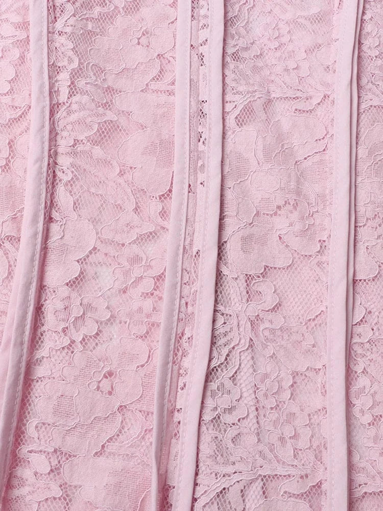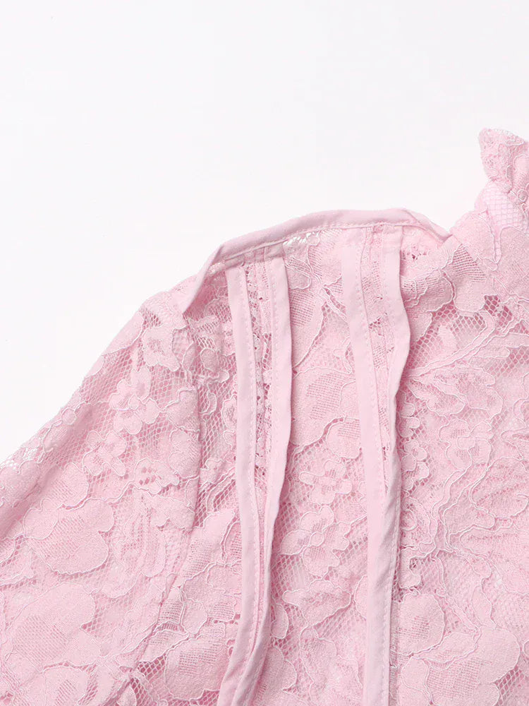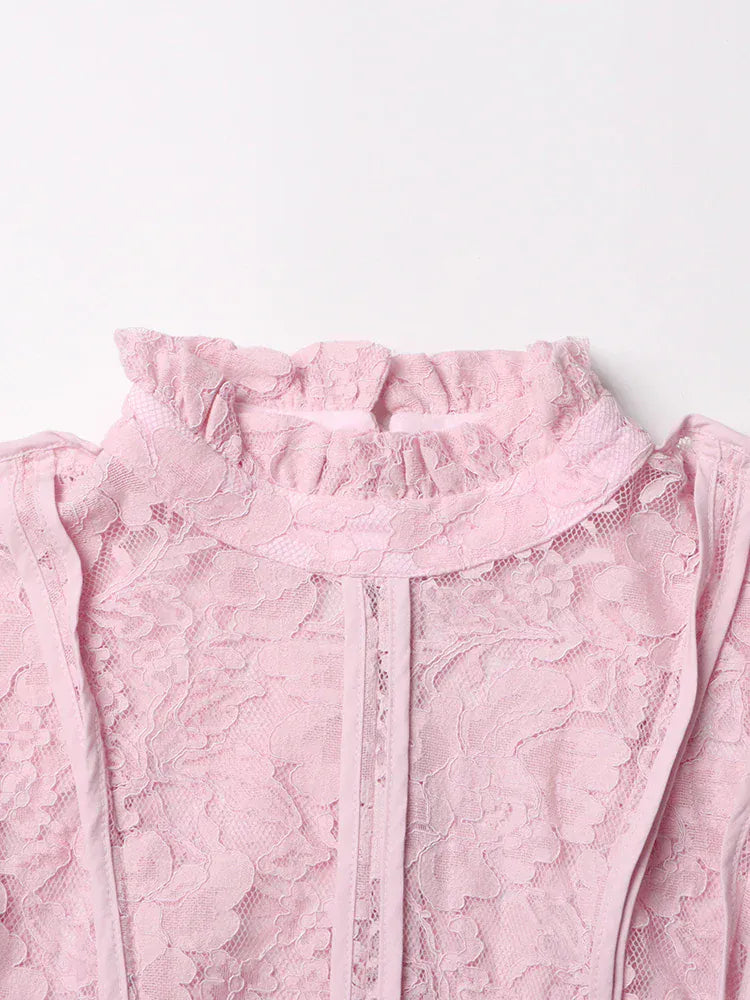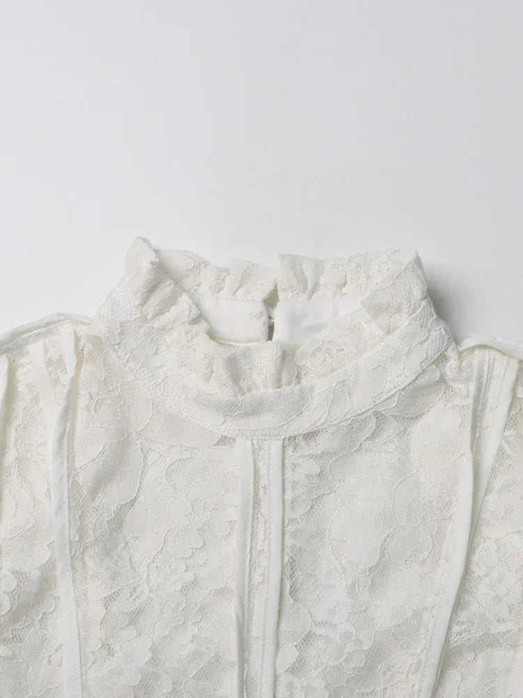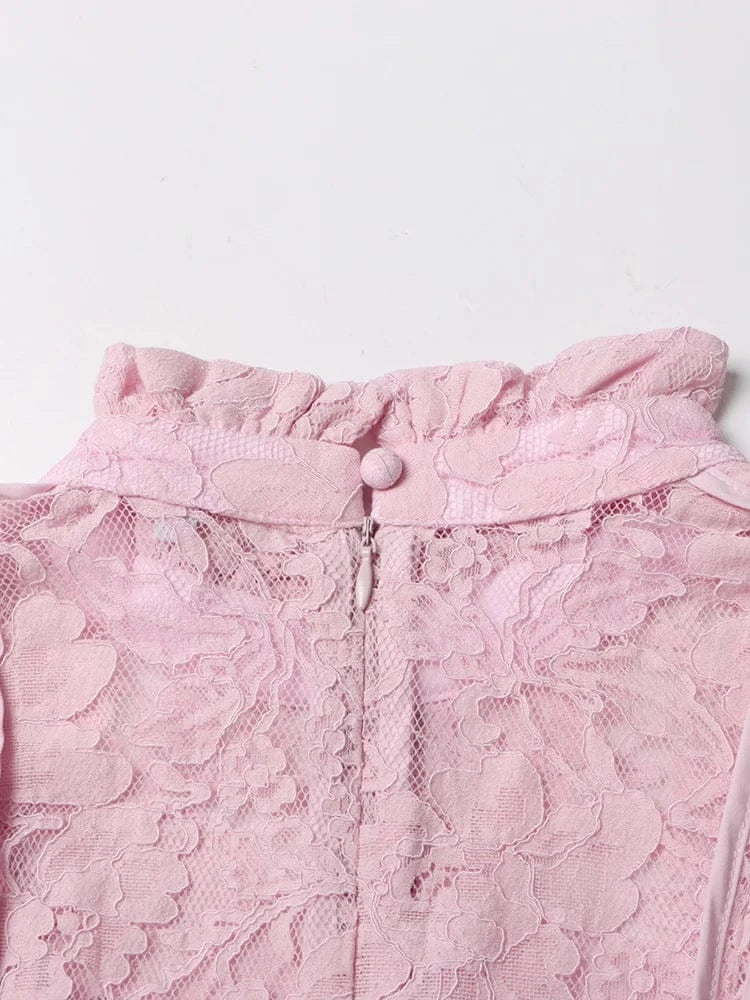 TWOTWINSTYLE Patchwork Lace Slimming Dresses For Women Stand Collar Flare Sleeve High Waist Solid Elegant Dress Female Fashion