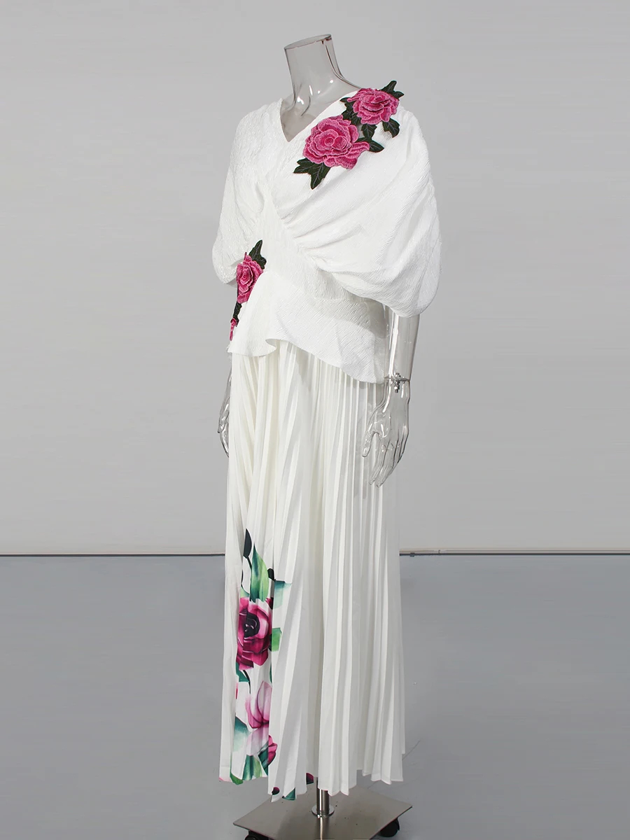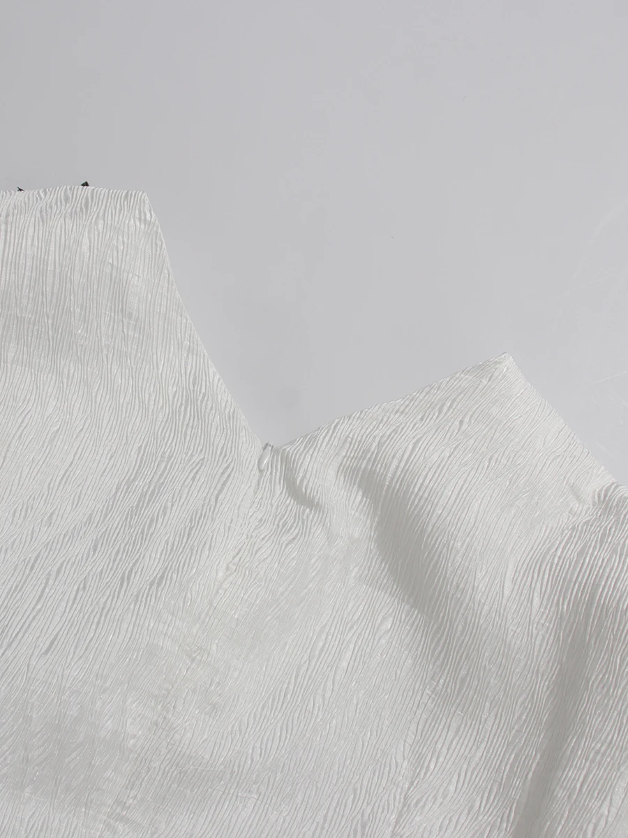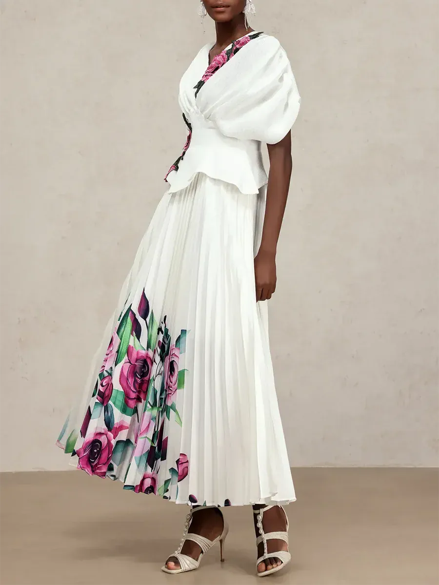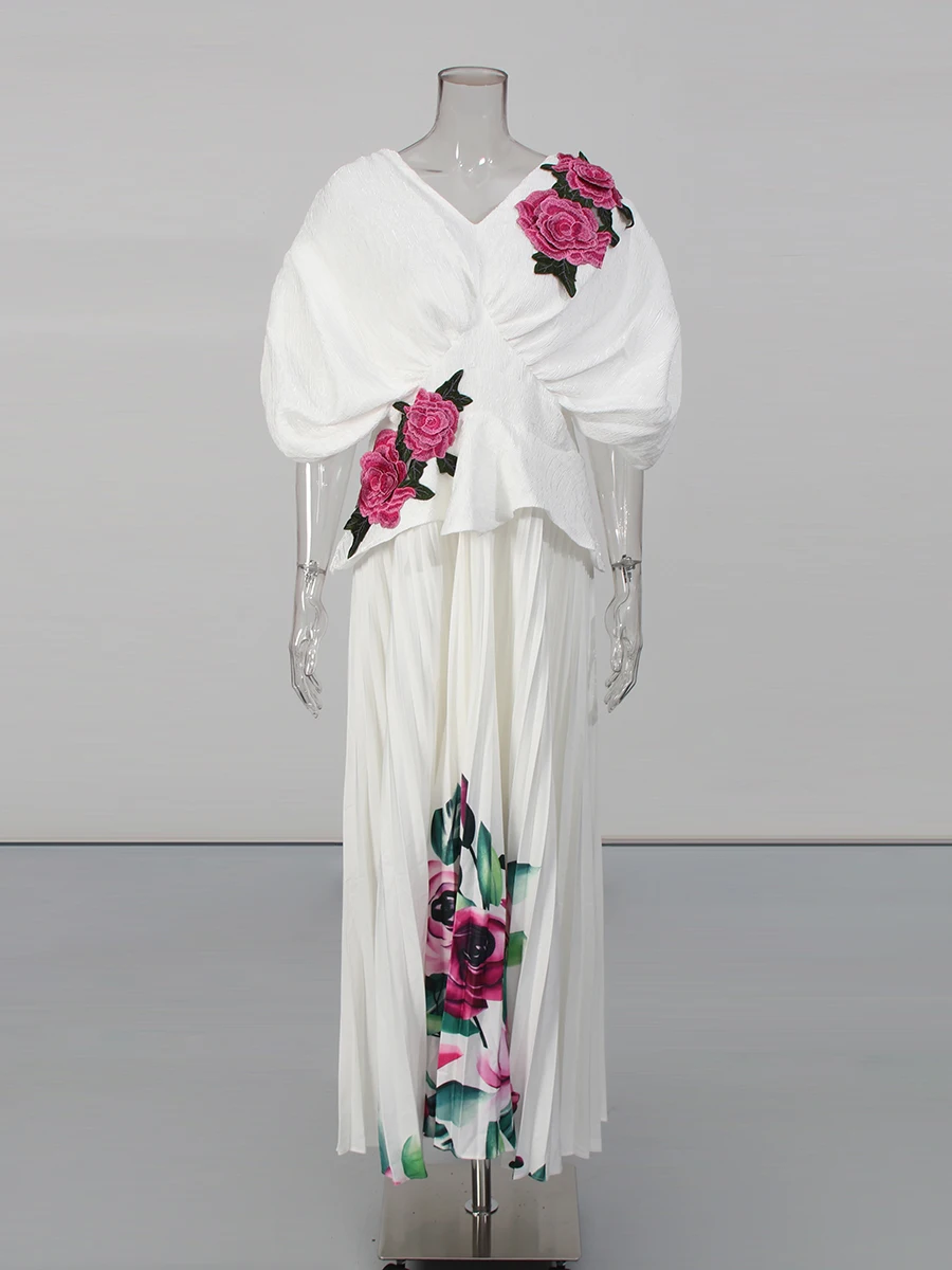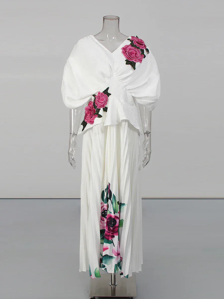 TWOTWINSTYLE Printing Spliced Embroidery Elegant Dresses for Women V Neck Short Sleeves Tunic Patchwork Folds Long Dress Female