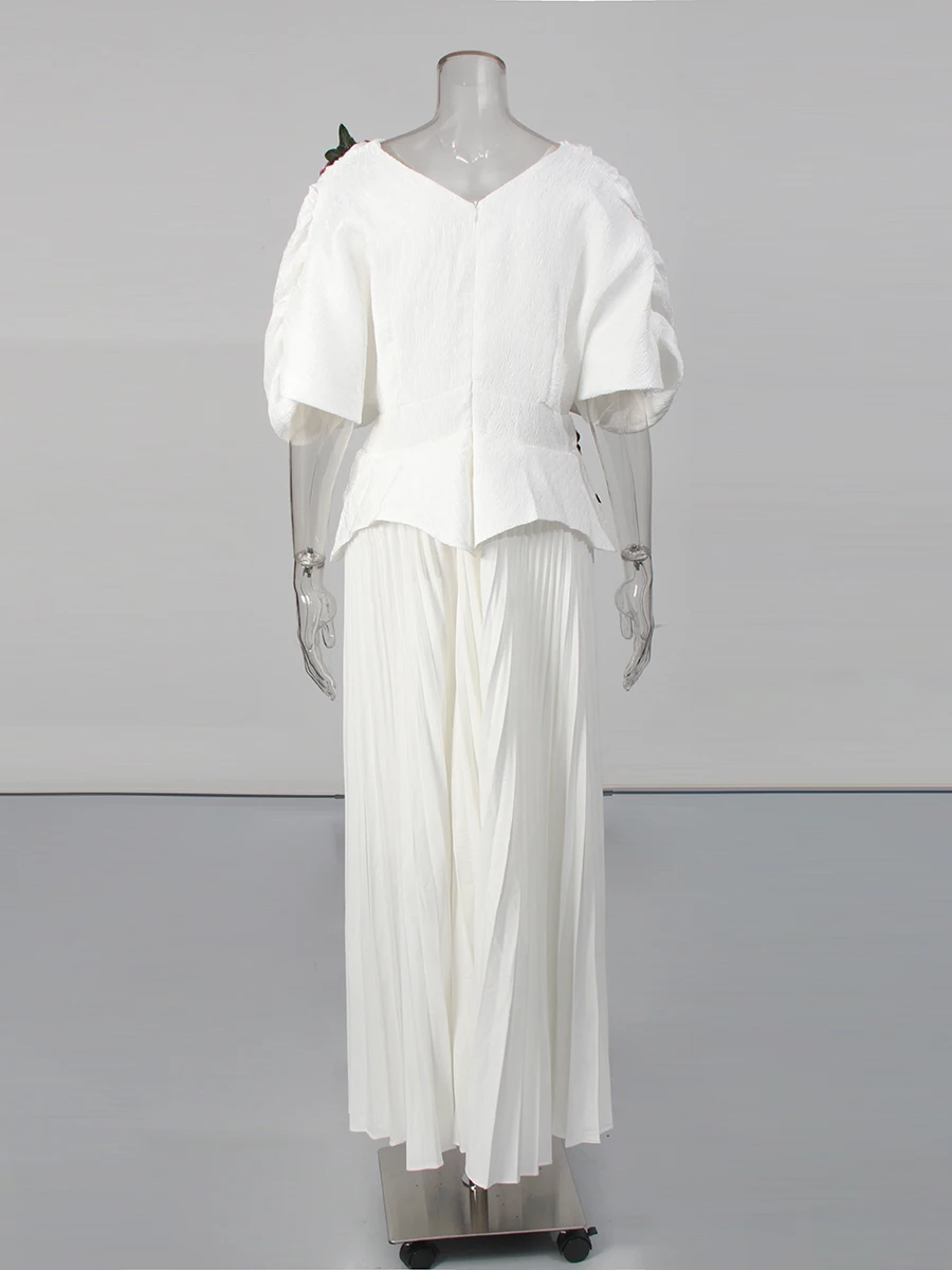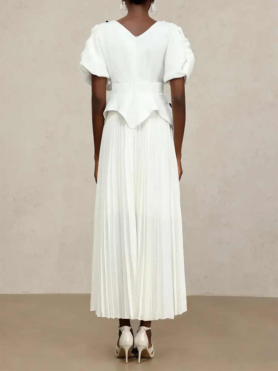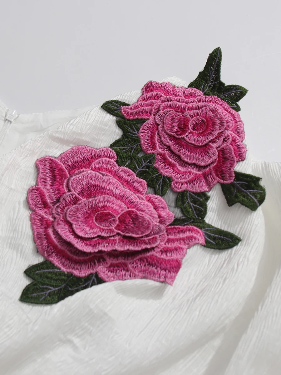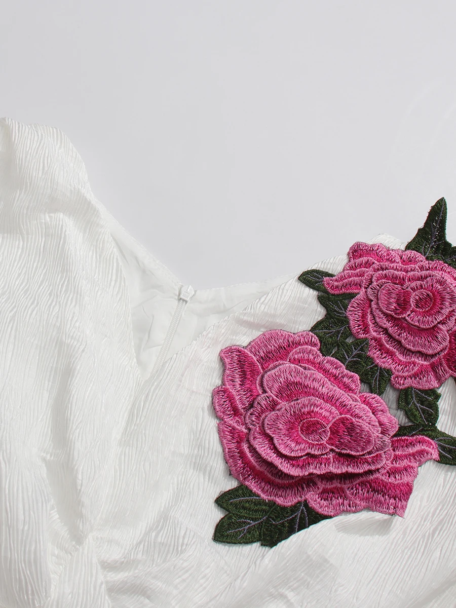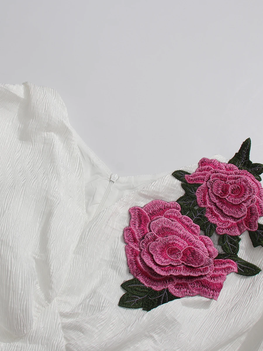 TWOTWINSTYLE Printing Spliced Embroidery Elegant Dresses for Women V Neck Short Sleeves Tunic Patchwork Folds Long Dress Female