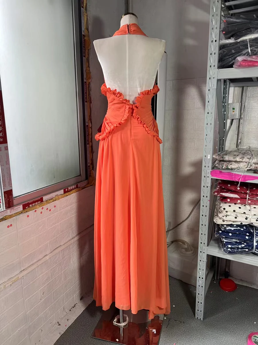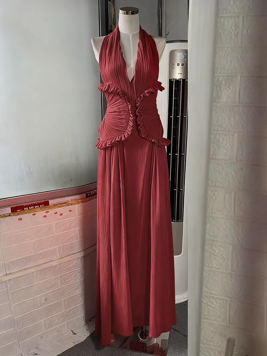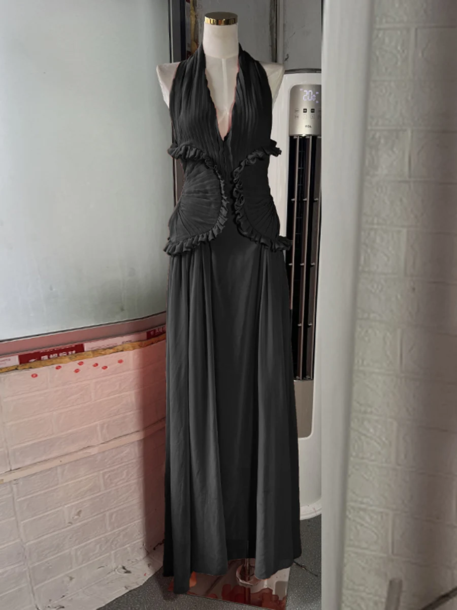 TWOTWINSTYLE Slimming Spliced Folds Elegant Dresses for Women Halter Sleeveless Tunic Temperament Long Dress Female Clothing New