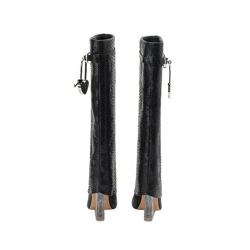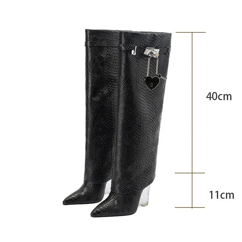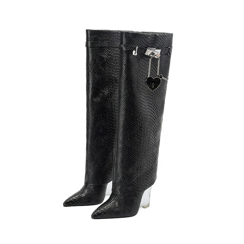 TX High quality jelly sole heeled long pant boots women knee shark lock croc-effect fashion winter boots