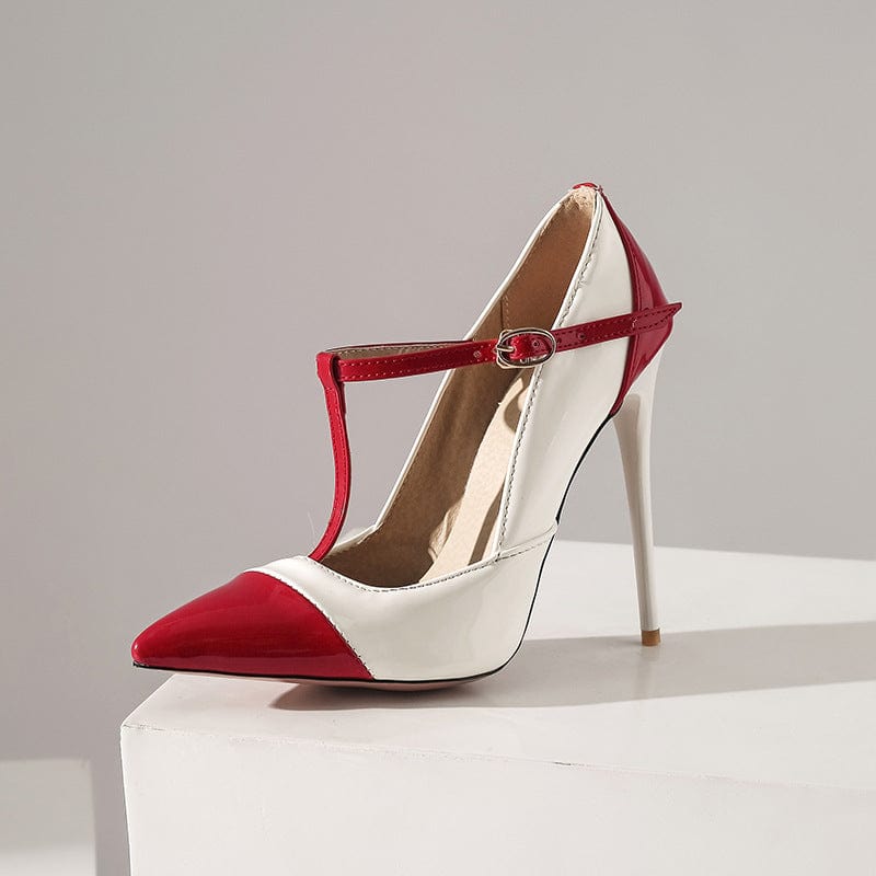 TX New spring new pointed toe high heels stiletto leather red wedding sandals women