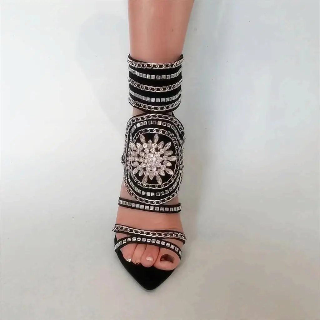 Ubililia back zipper up pointed toe diamond sandals for women Spring summer metal chain details peep toe ankle Boots sandals