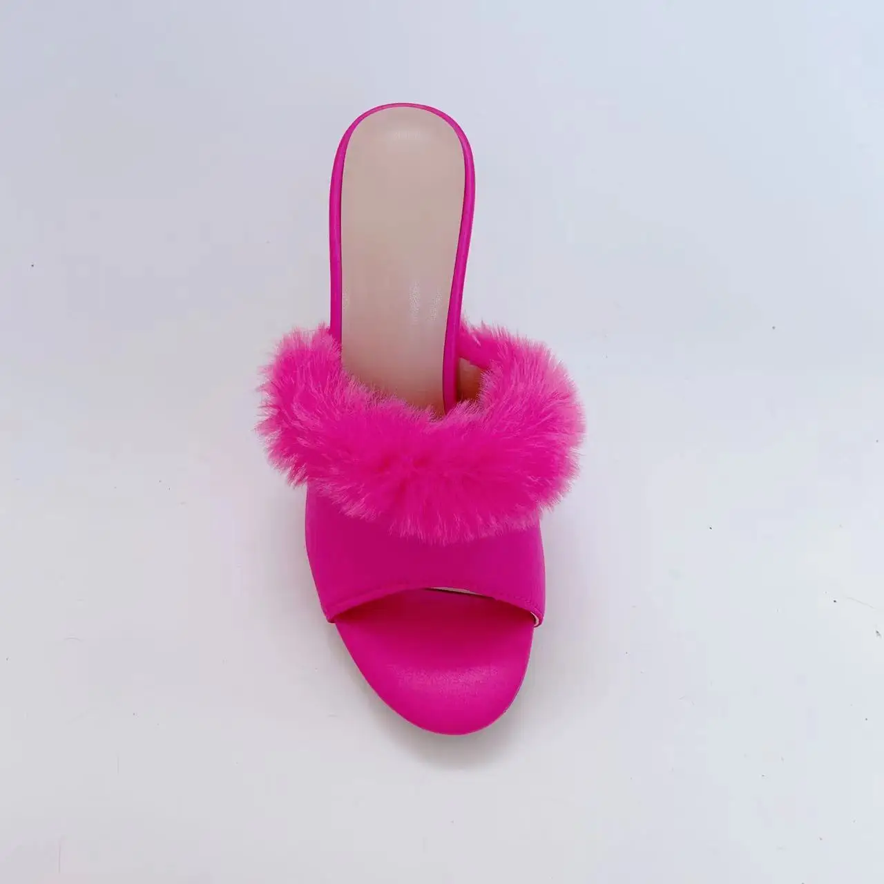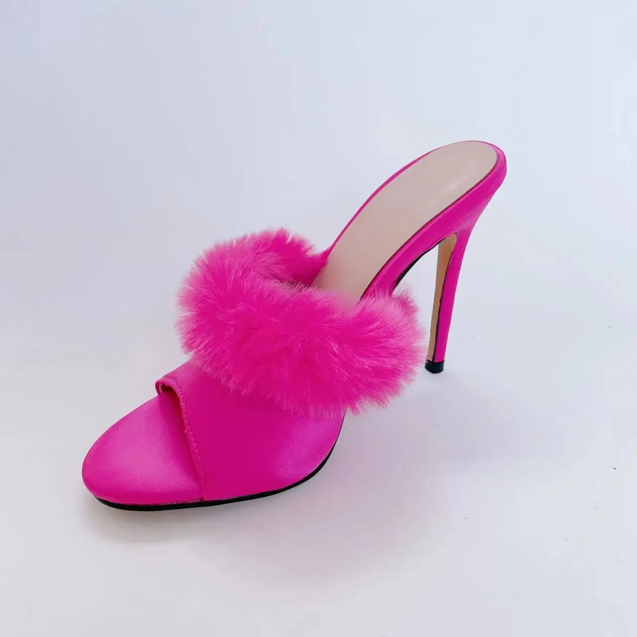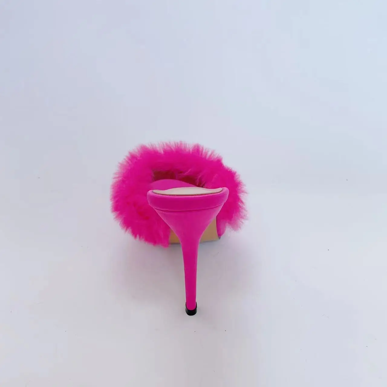 Ubililia Custom hot pink High Heel slides mules Furry Fluffy Pointy Toe slippers Fur stiletto high Heels Women suede Sandals