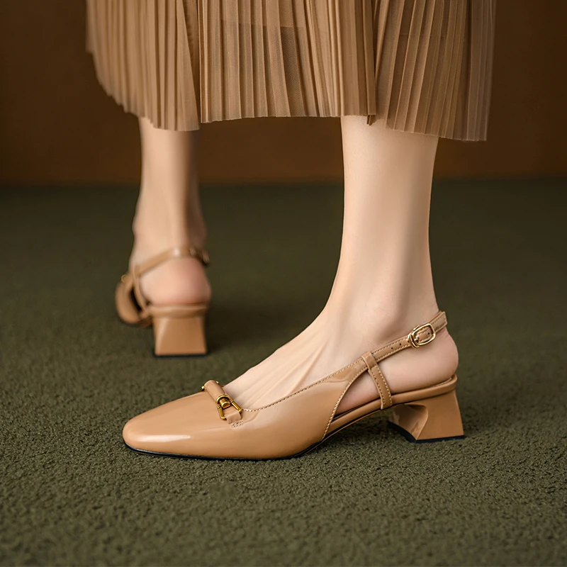Ubililia Custom wholesale slingback pumps square toe flats Joker shoes women casual shoes genuine leather sandals for girls