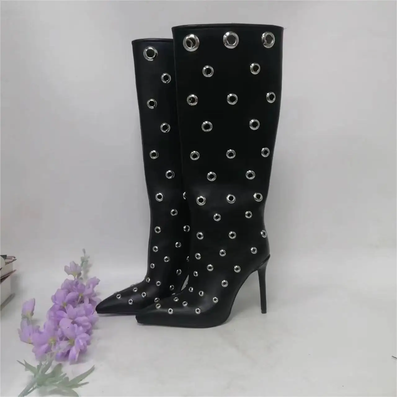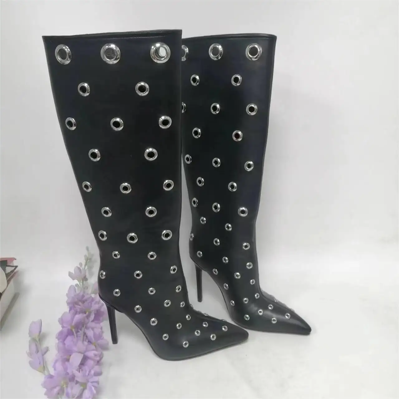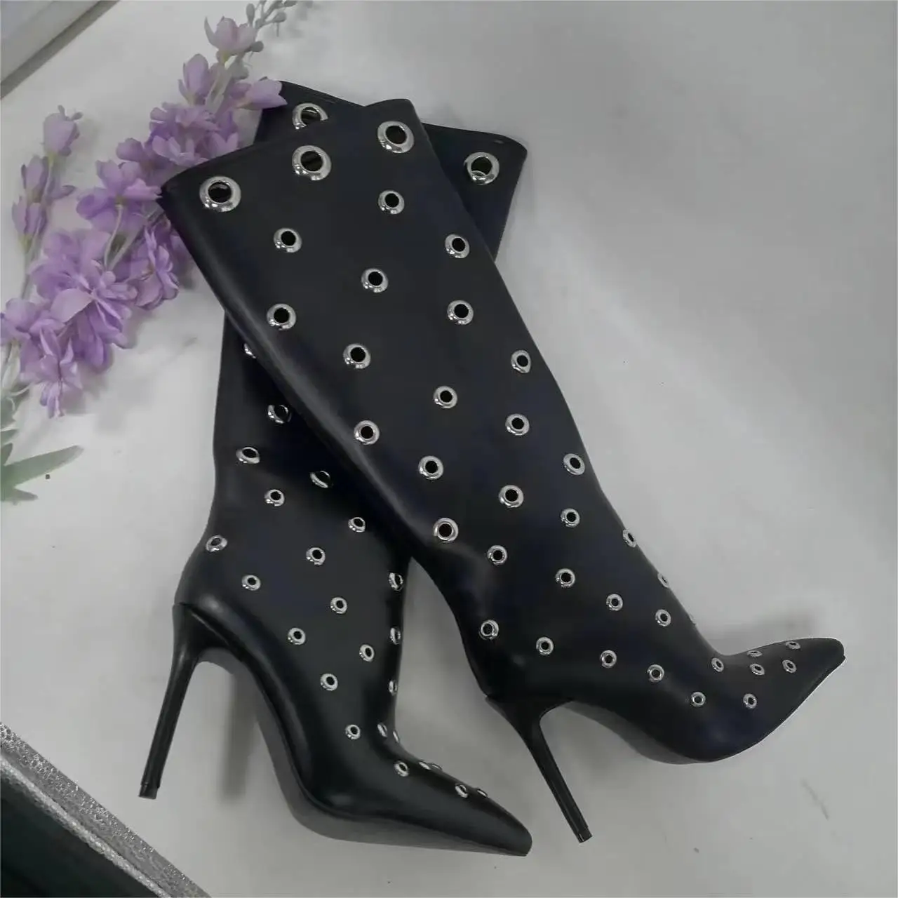 UBILILIA hollowed pointed toe High Heels Boots For Women Thigh High Boots Sexy Nightclub Ladies Dance Ring Decor Knee high Boots