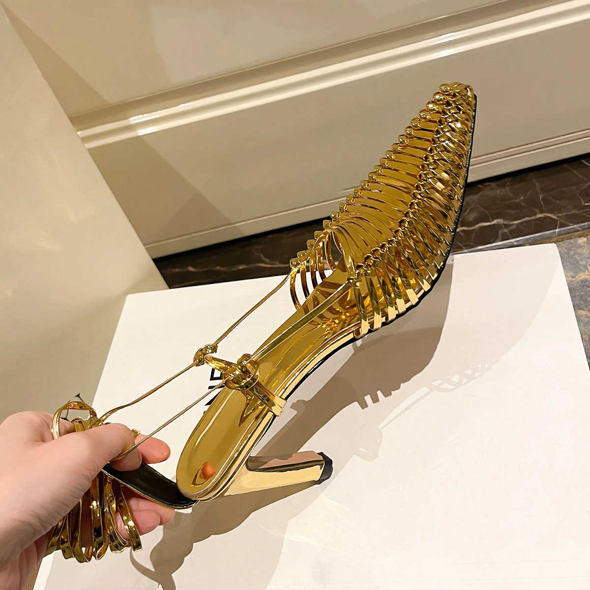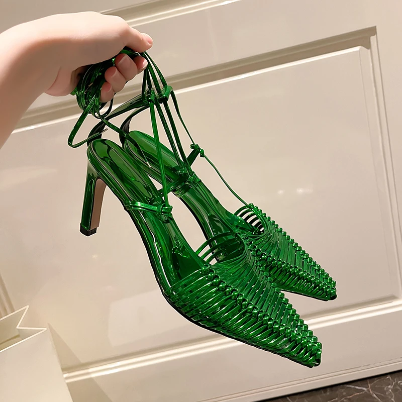 Ubililia Roman Style plait Lace Up Dress Sandals Women's Low Heels Knitting Cut braid Summer Custom weave strappy women Shoes