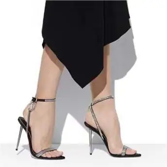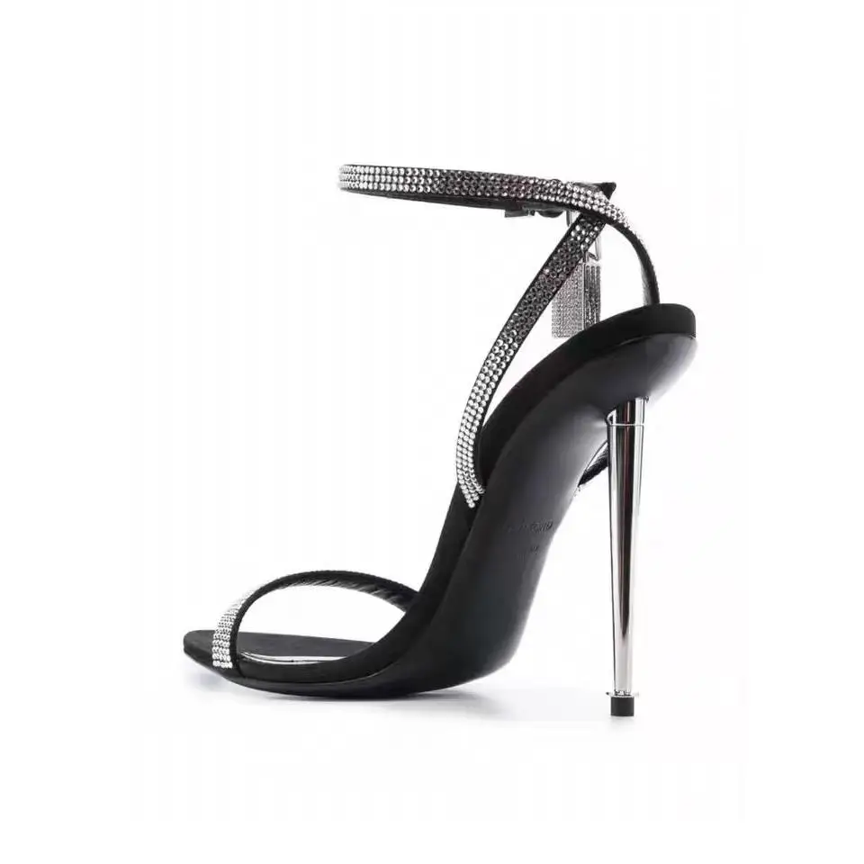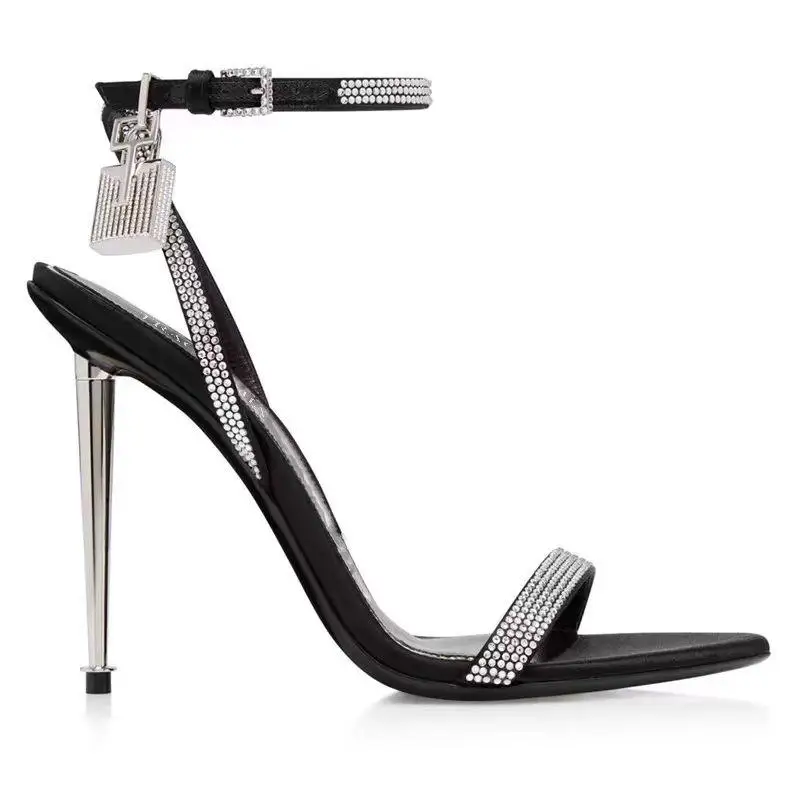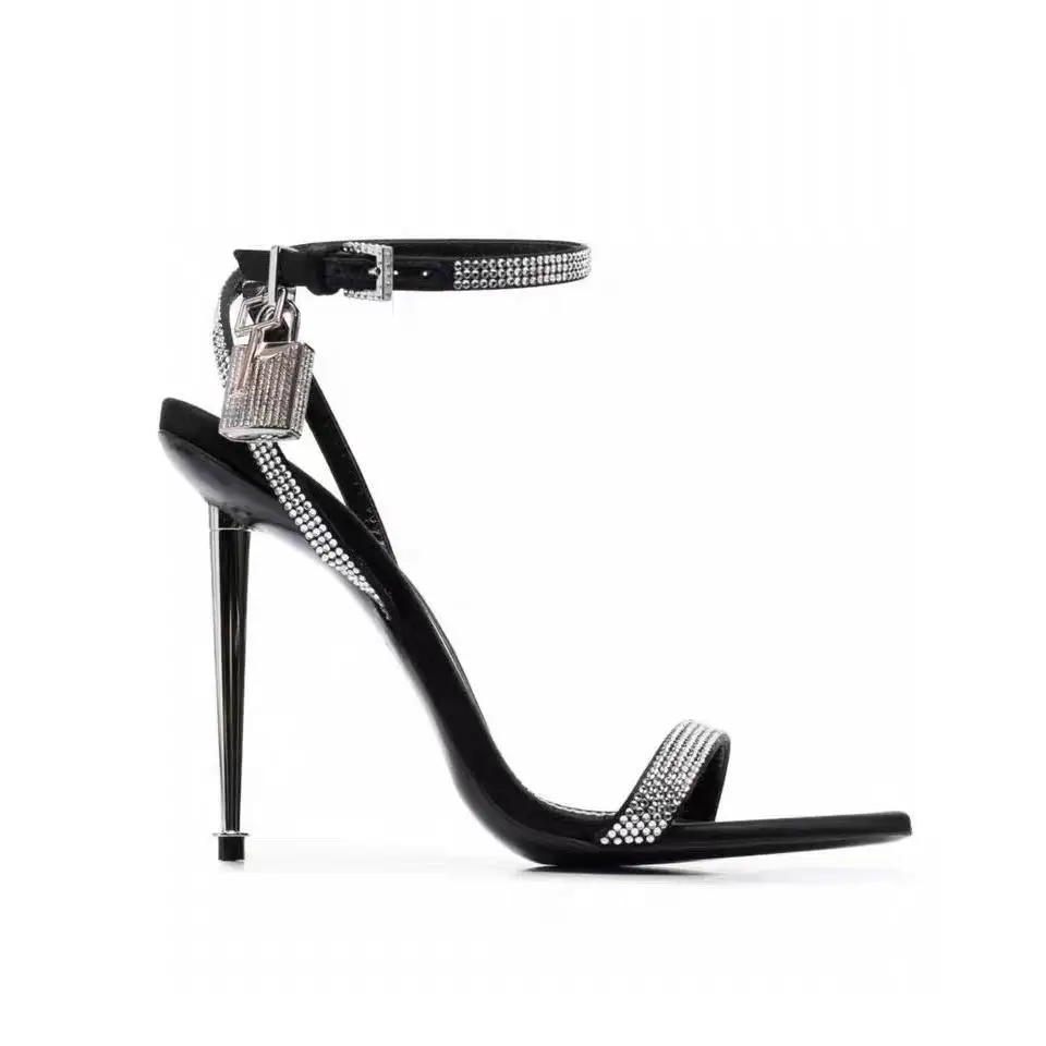 Ubililia Unique Luxury fashion trend rhinestone Lock diamond ankle cross strap sandals high heels shoes for women Heels sandals