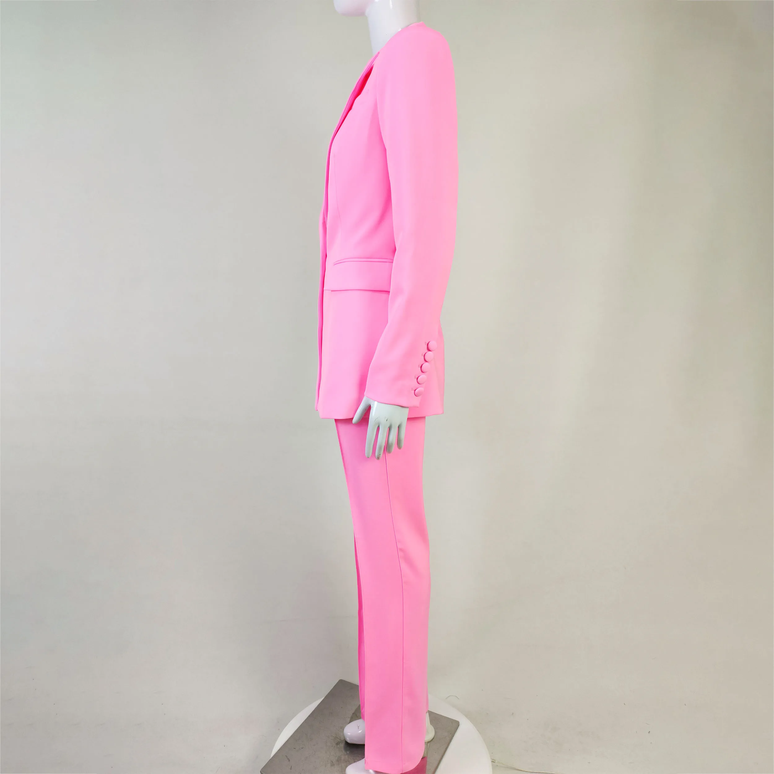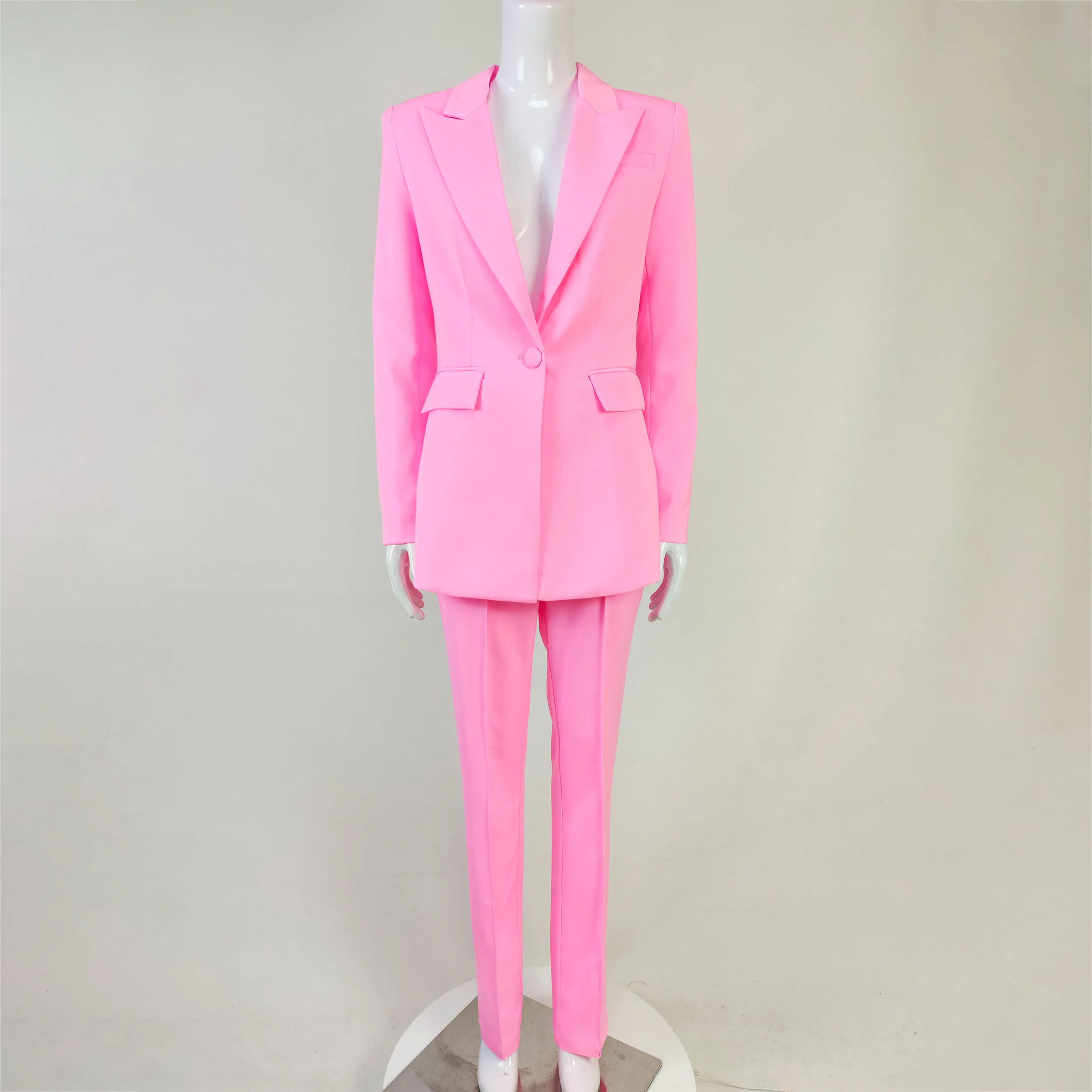 undefined A6944 women office pink color lady blazer and long pant skinny Set casual womens suits & tuxedo