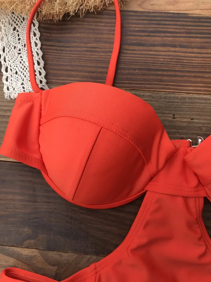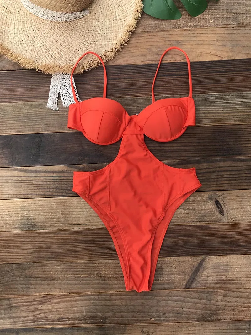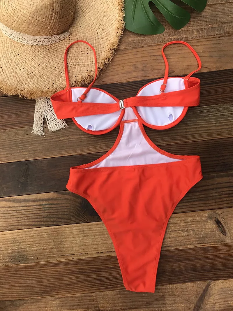 Underwire Trikini One Piece Swimsuit Sexy Monokini Backless Swimwear for Women 2023 Summer New Solid Color Swimsuit Beachwear