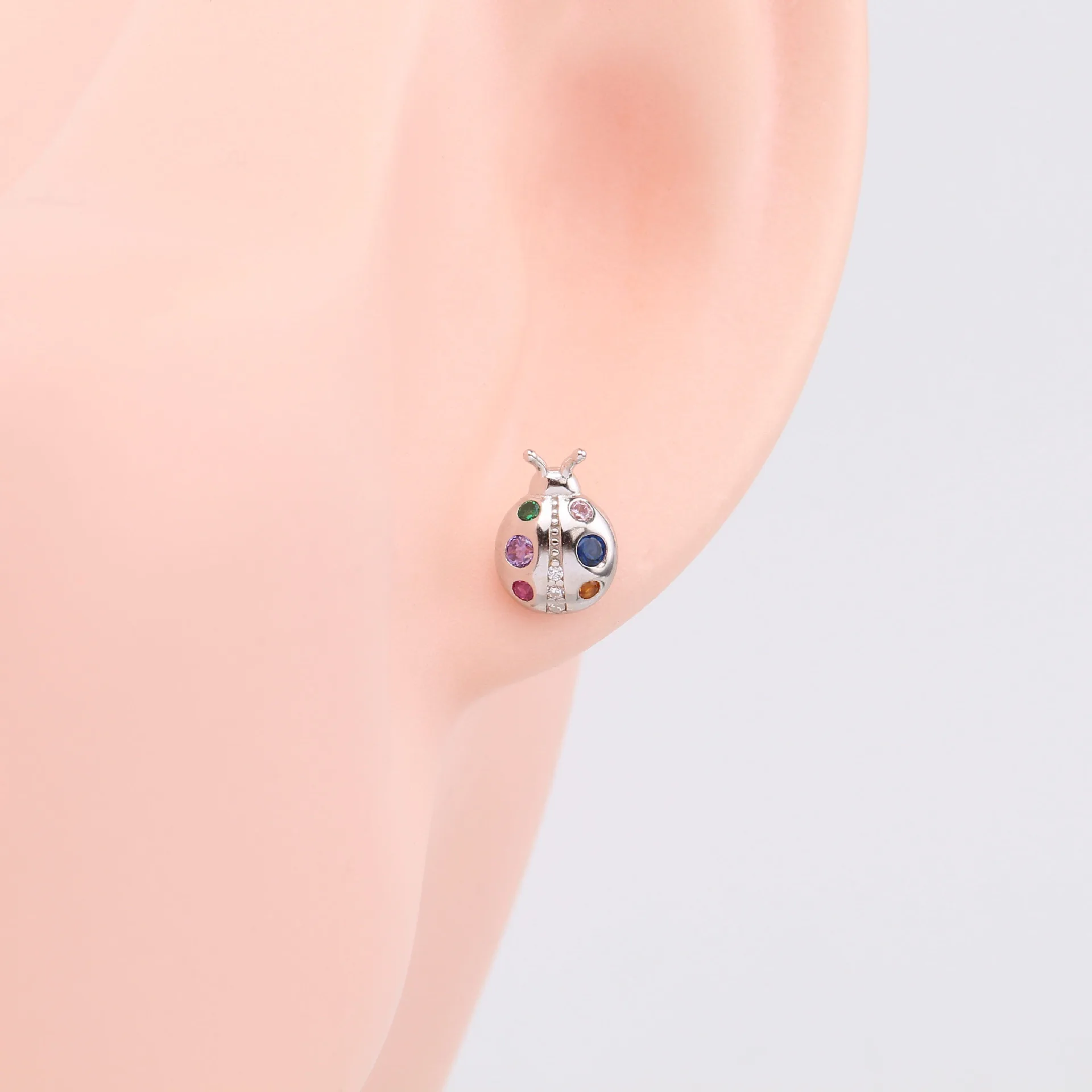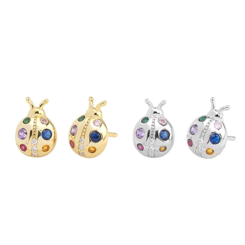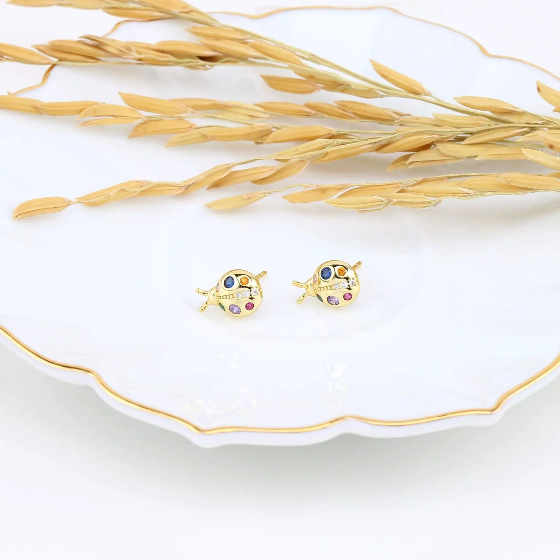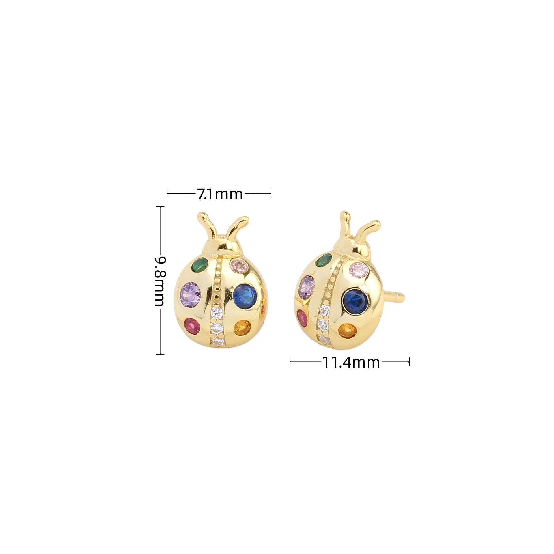 Unique luxury Simple 925 sterling silver Diamond Earrings Lady gold plated statement multi rainbow colored ladybug Stud Earring