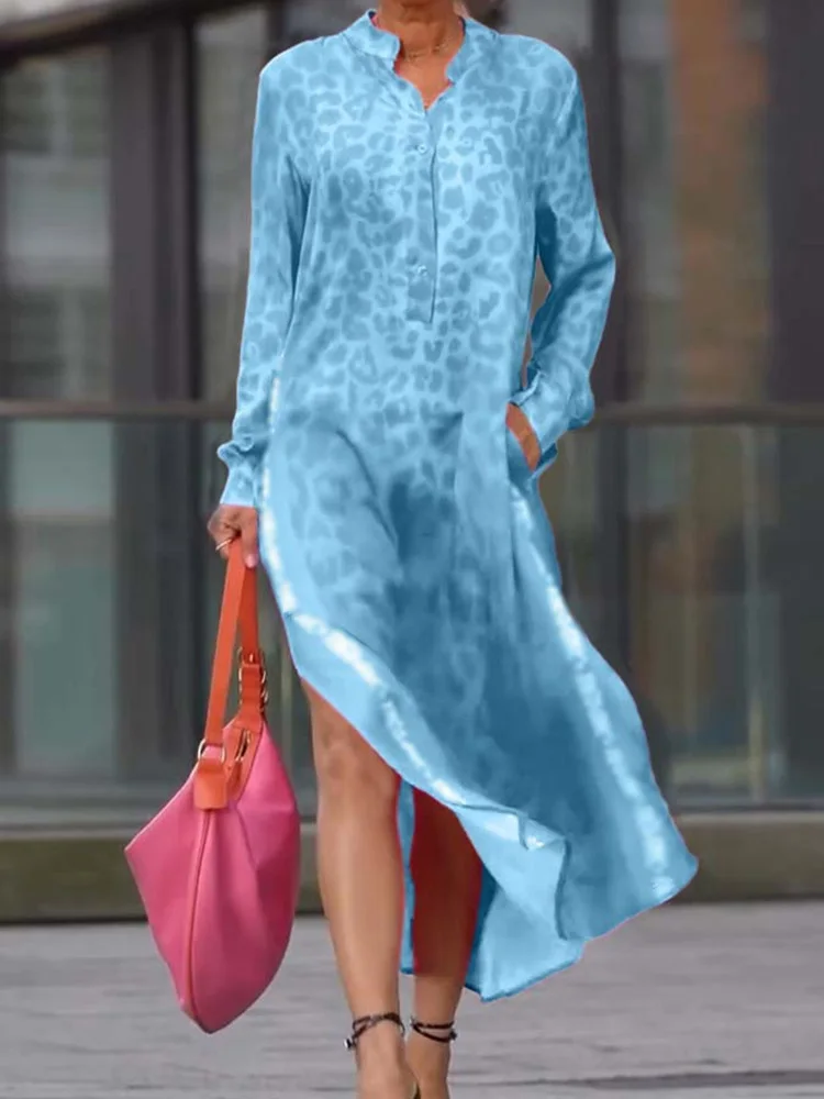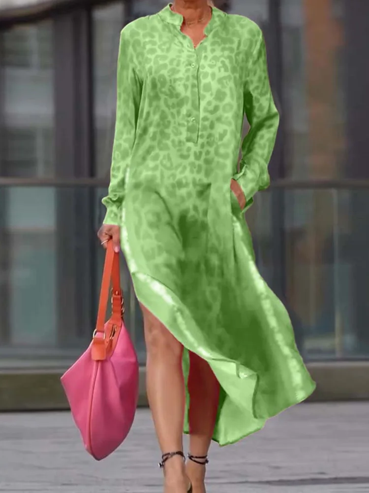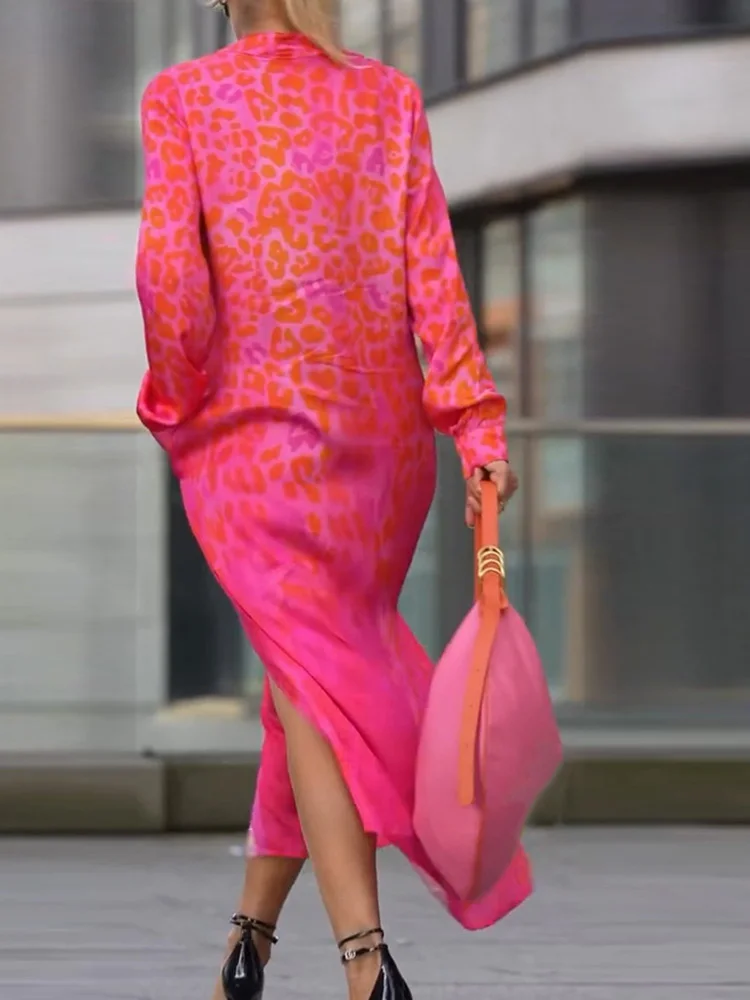 V Neck Holiday Printing Patchwork Maxi Dress, Women Spring Summer Long Sleeve Chic Party Dress, 2025 Loose Elegant Ladies Dress
