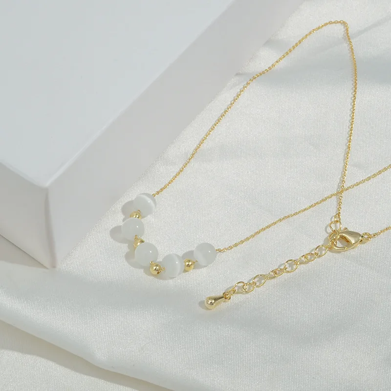 Valentine's Delicate Necklace Drop Cz Opal Bead Necklace for Women Lady Girly Choker Necklace