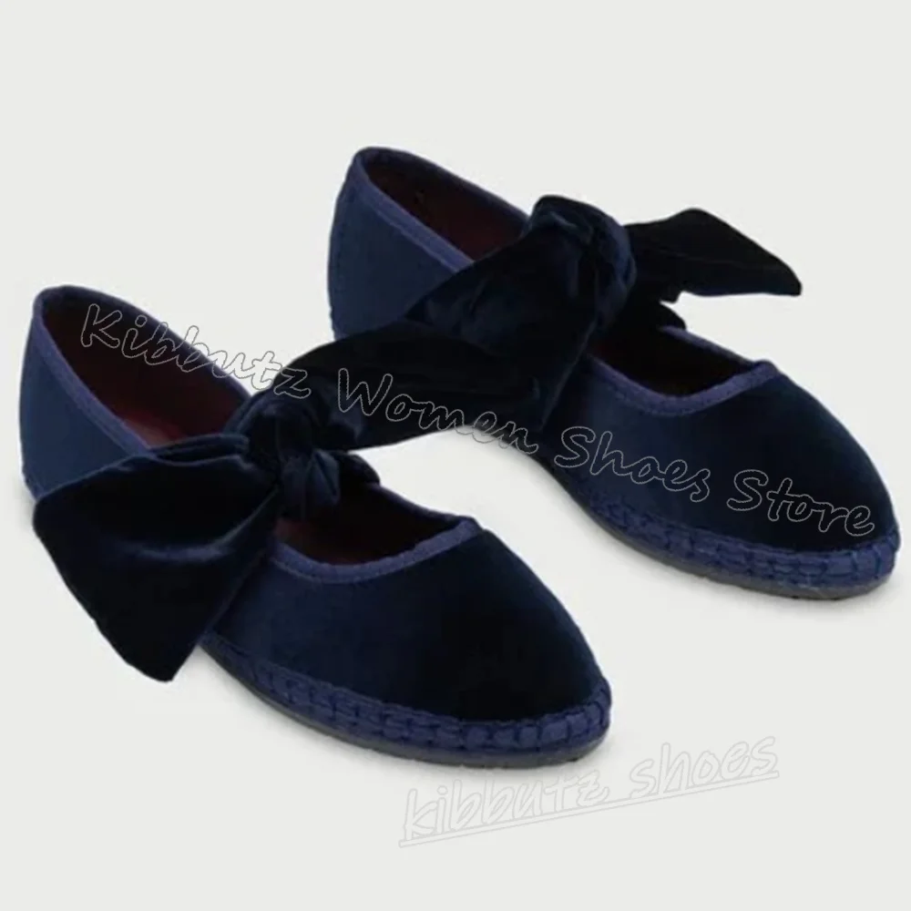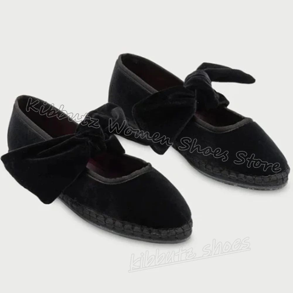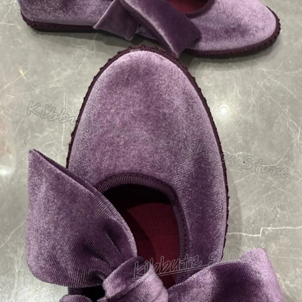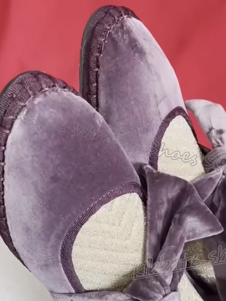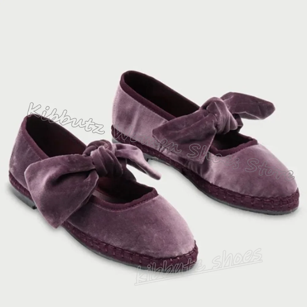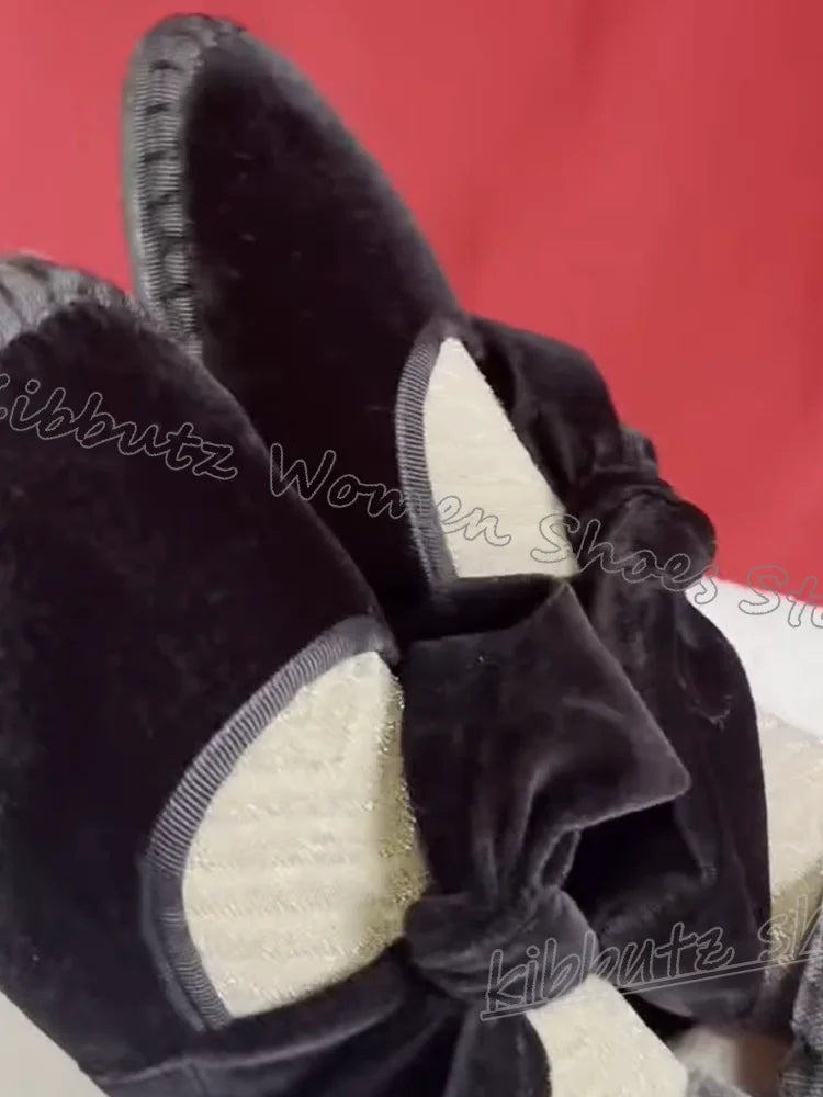 Velvet Bows Pumps Knots Solid Color Slip-On Round Toe Flat with Novelty Fashion Luxury Elegant Comfortable Sexy Women Shoes New