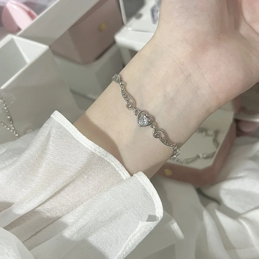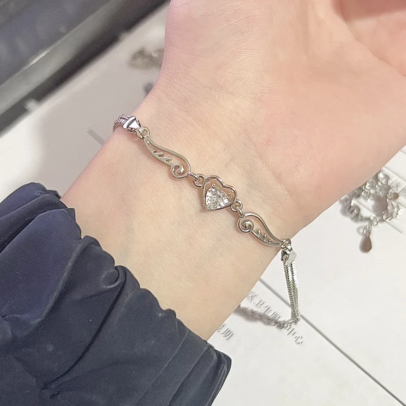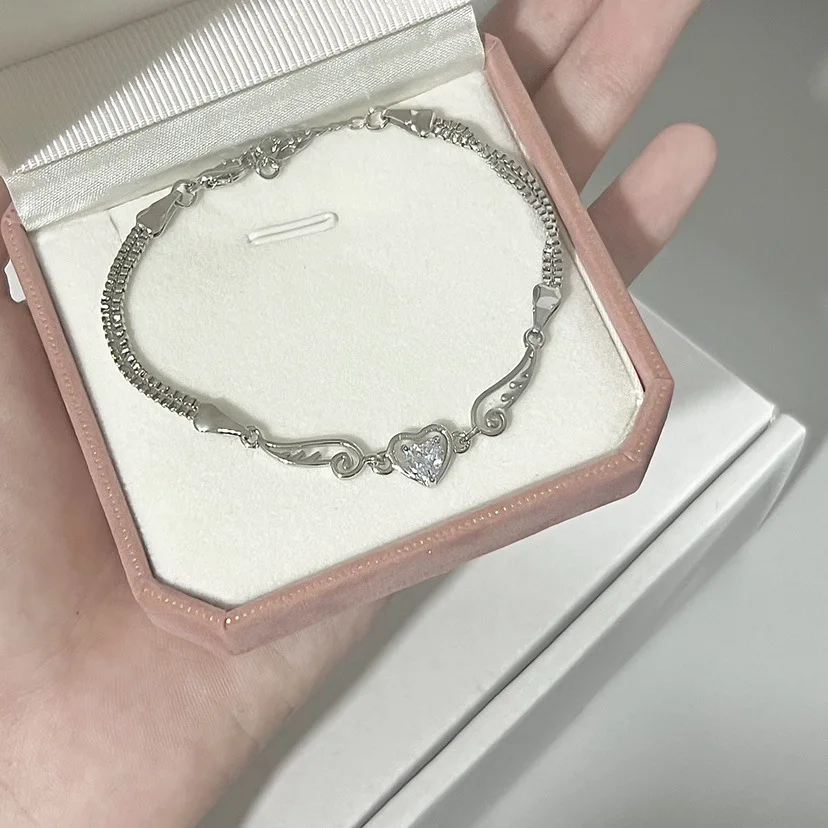 Versatile Women's Diamond Bracelet Latest 2024 Model Angel Wing Bracelet Heart Shaped Bracelet