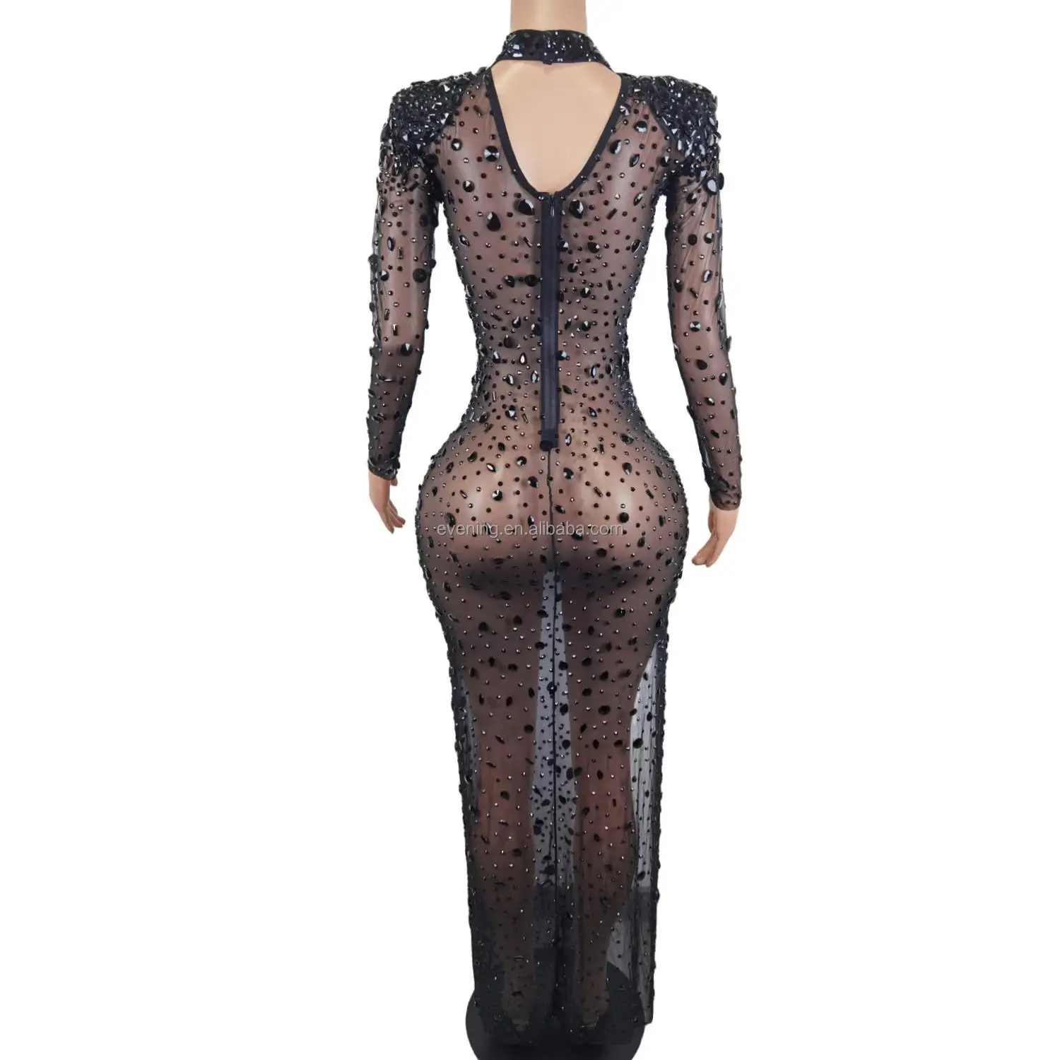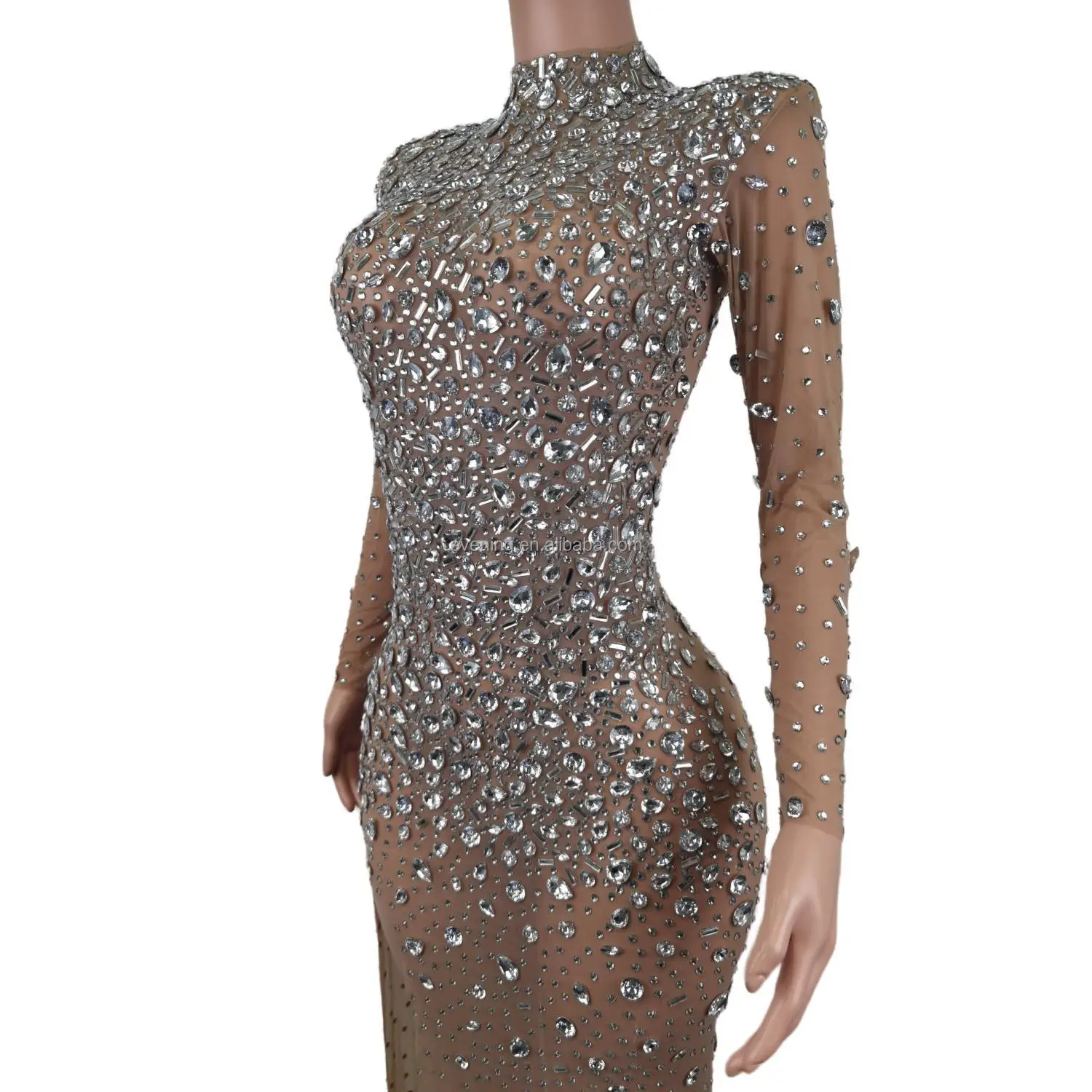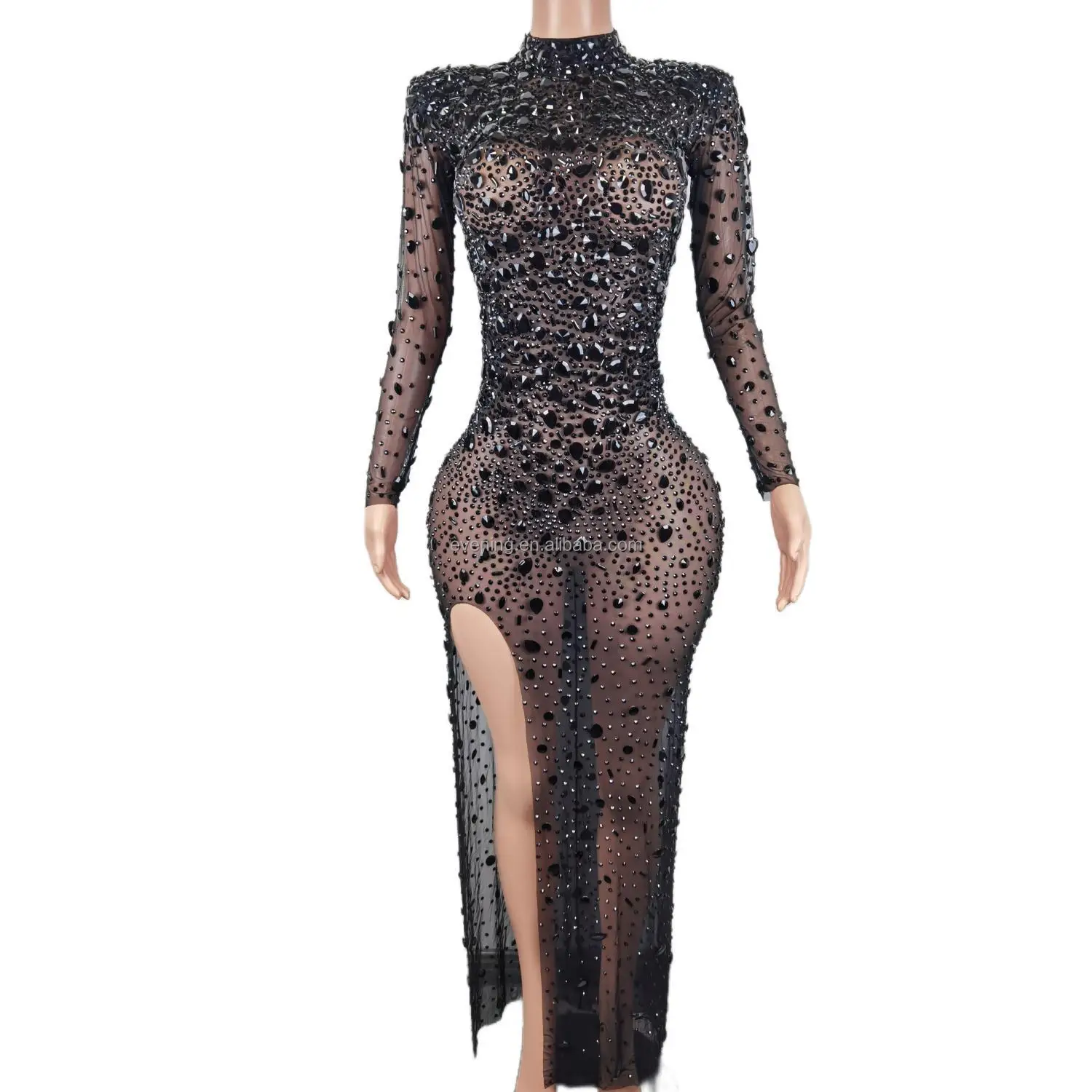 Vestido Sexy See Through High Slit Crystal Birthday Wedding Formal Dresses Women Lady Elegant Maxi Dinner Night Evening Dress