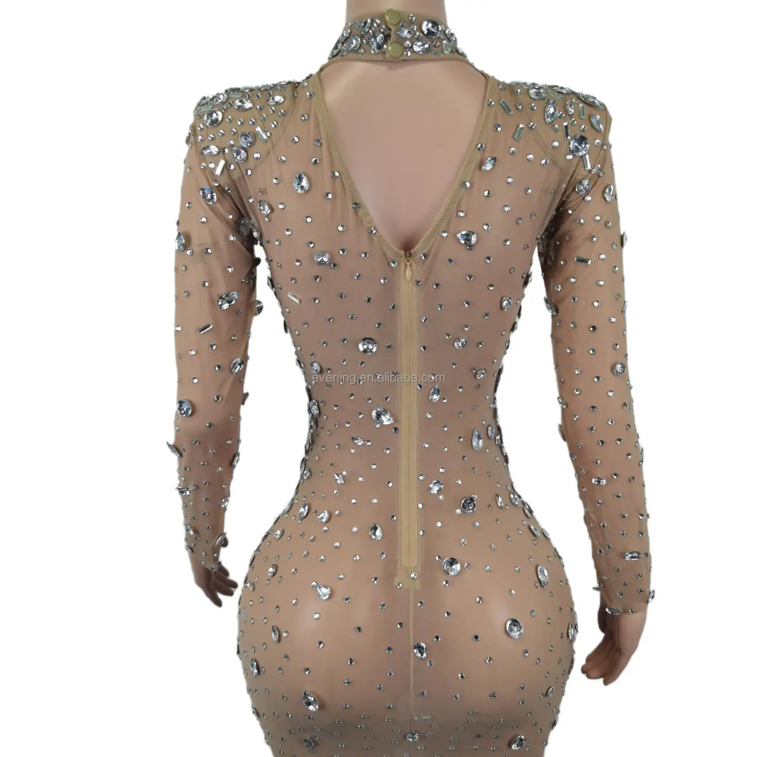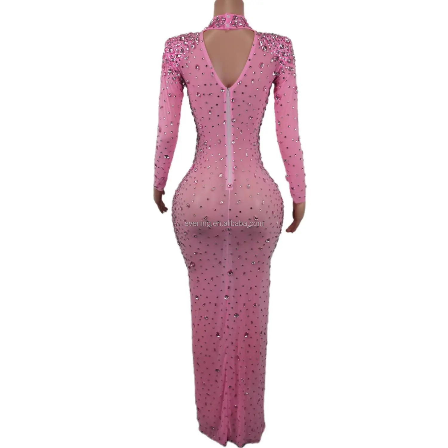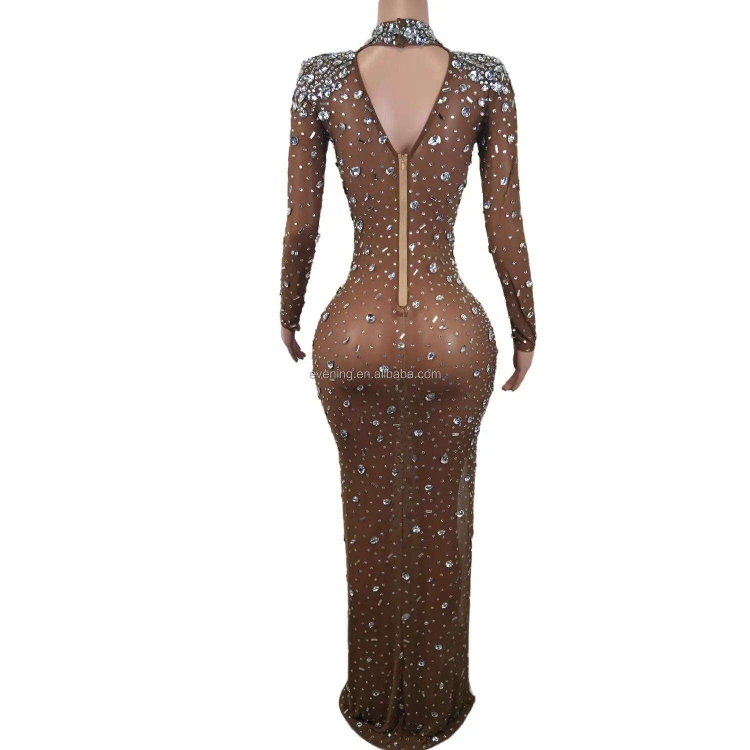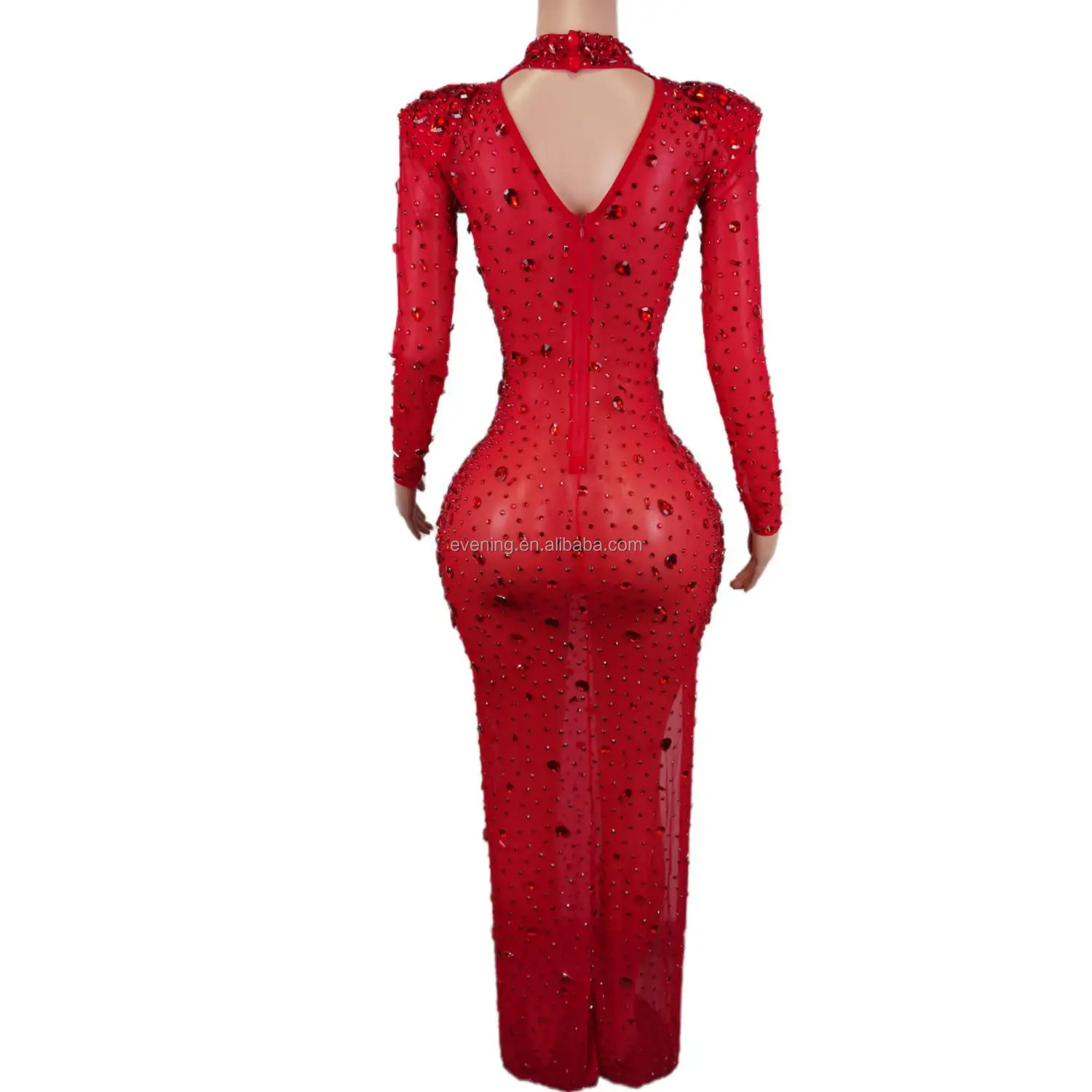 Vestido Sexy See Through High Slit Crystal Birthday Wedding Formal Dresses Women Lady Elegant Maxi Dinner Night Evening Dress