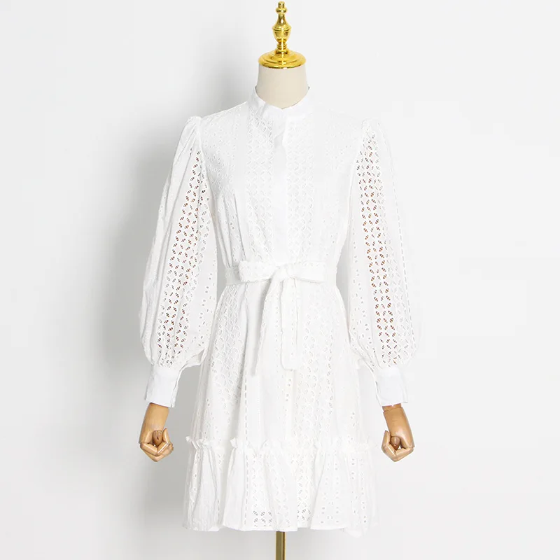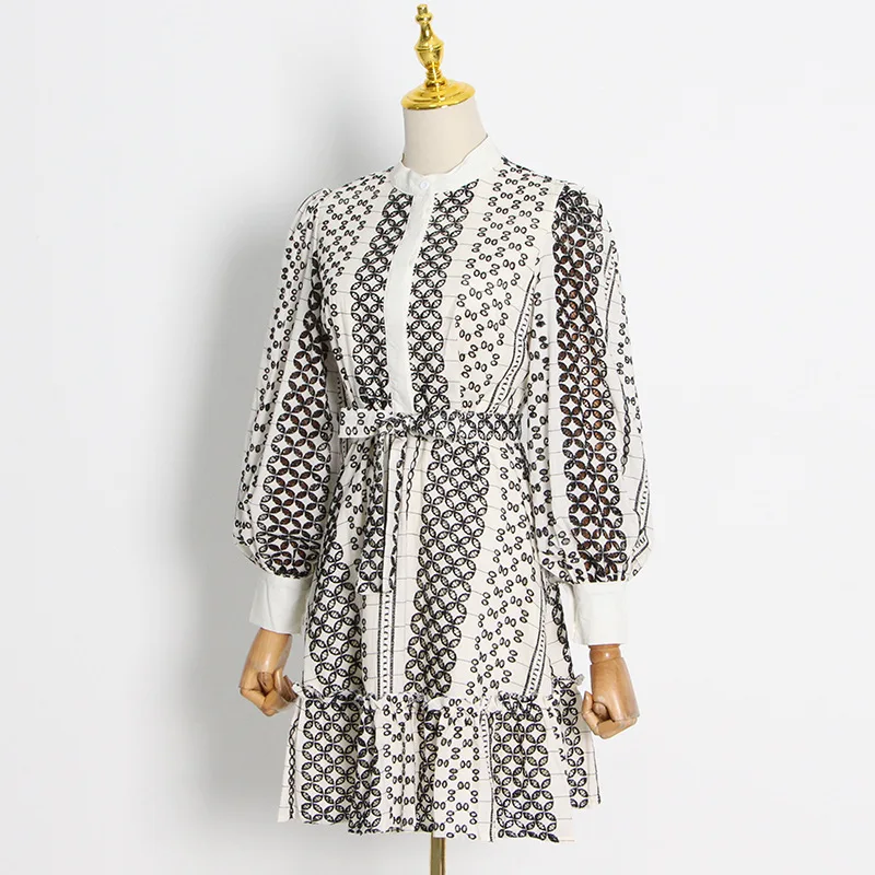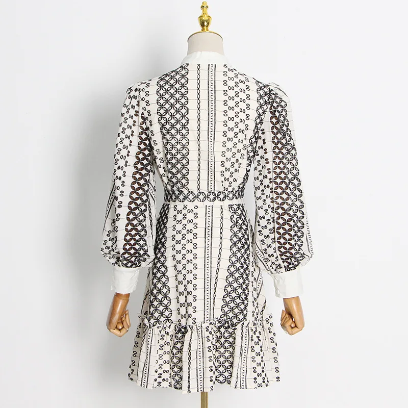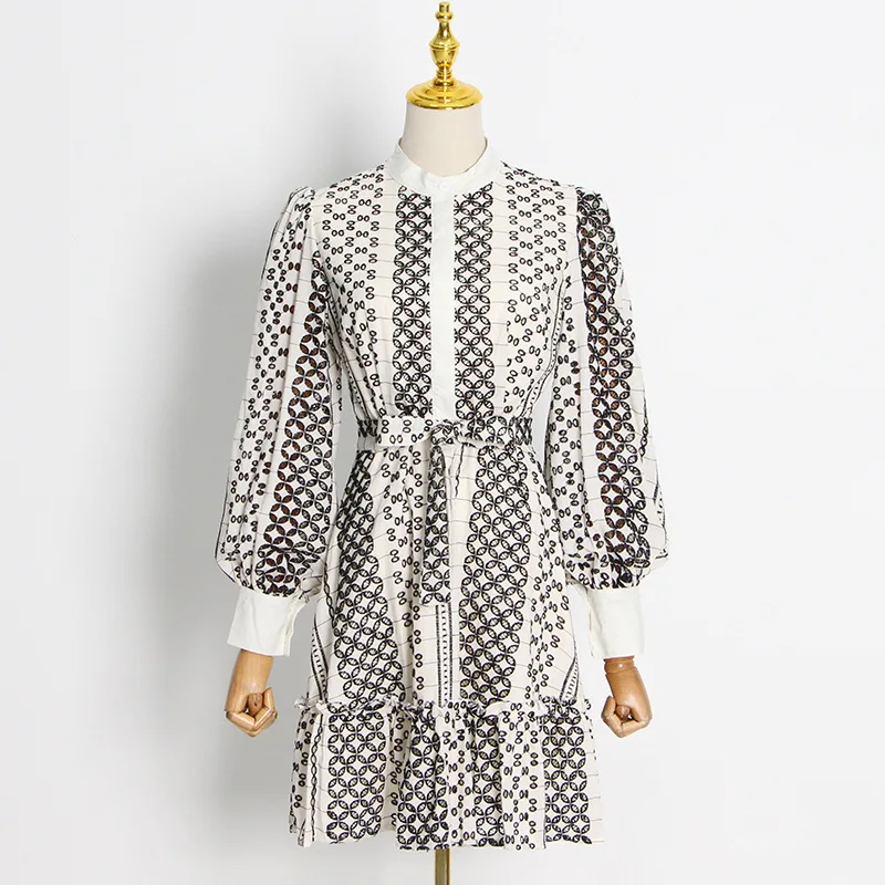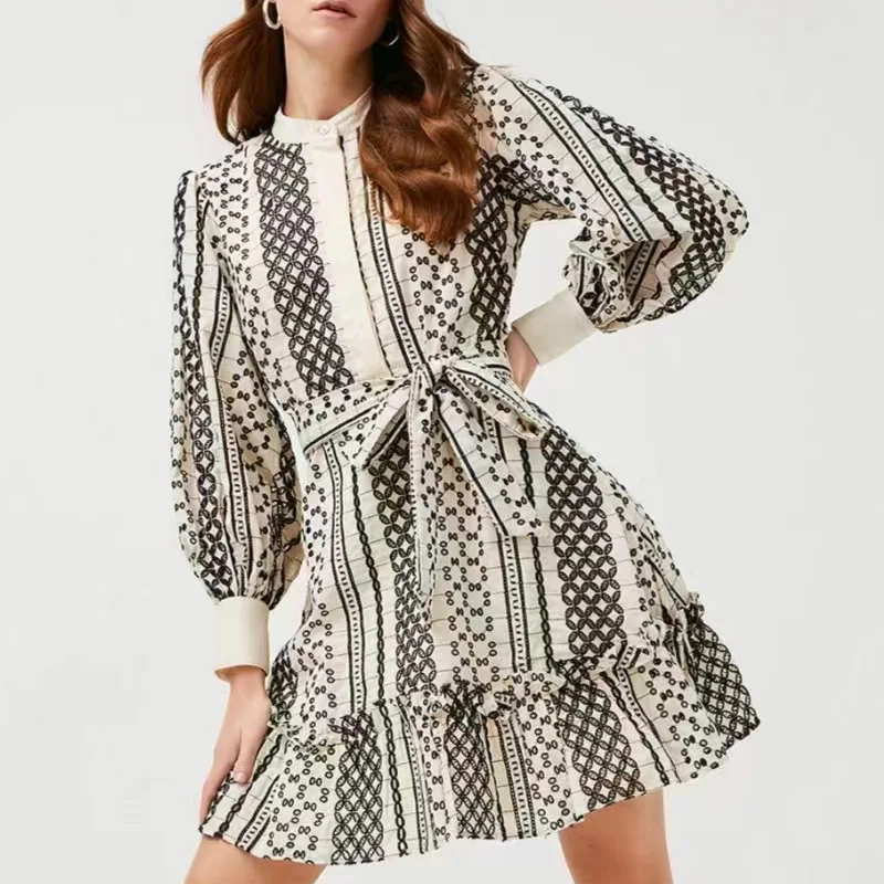 Vestidos Casuales Design Sense Temperament Celebrity Style Ruffle Dress 2022 Autumn New Fashion Puff Sleeve Lace Printed Dress