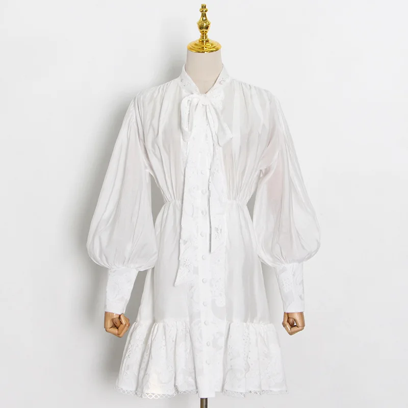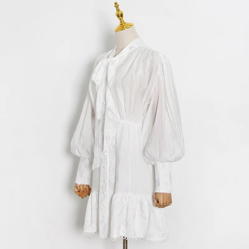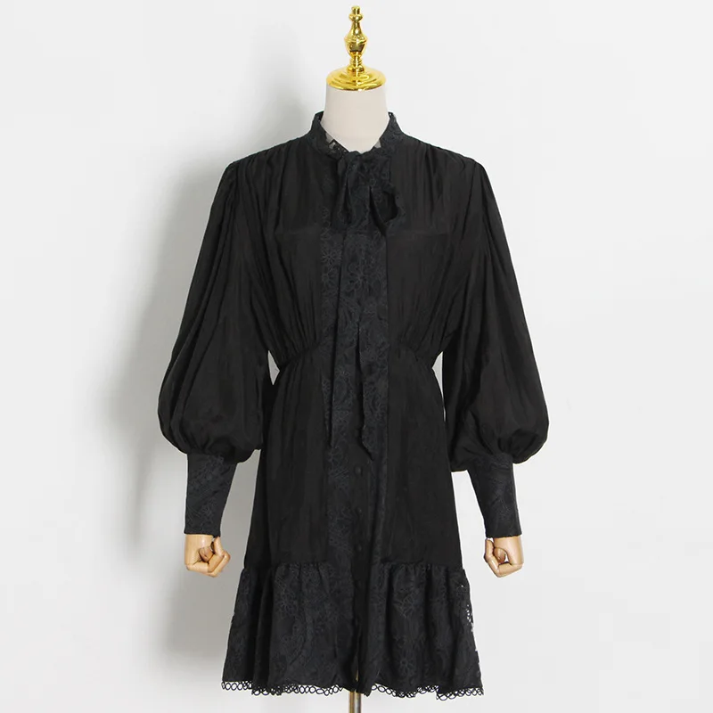 Vestidos Casuales Puff Sleeve Slim Short Dress 2022 Spring And Summer New Neckline Tie Ruffle Stitching Dress