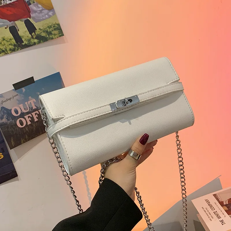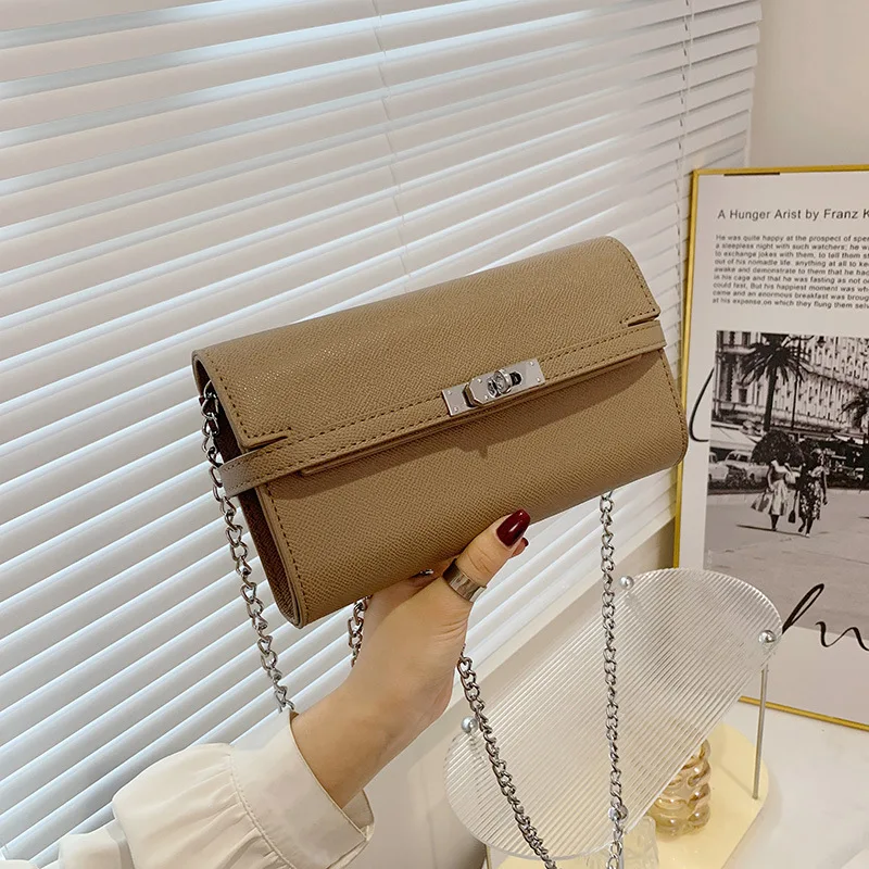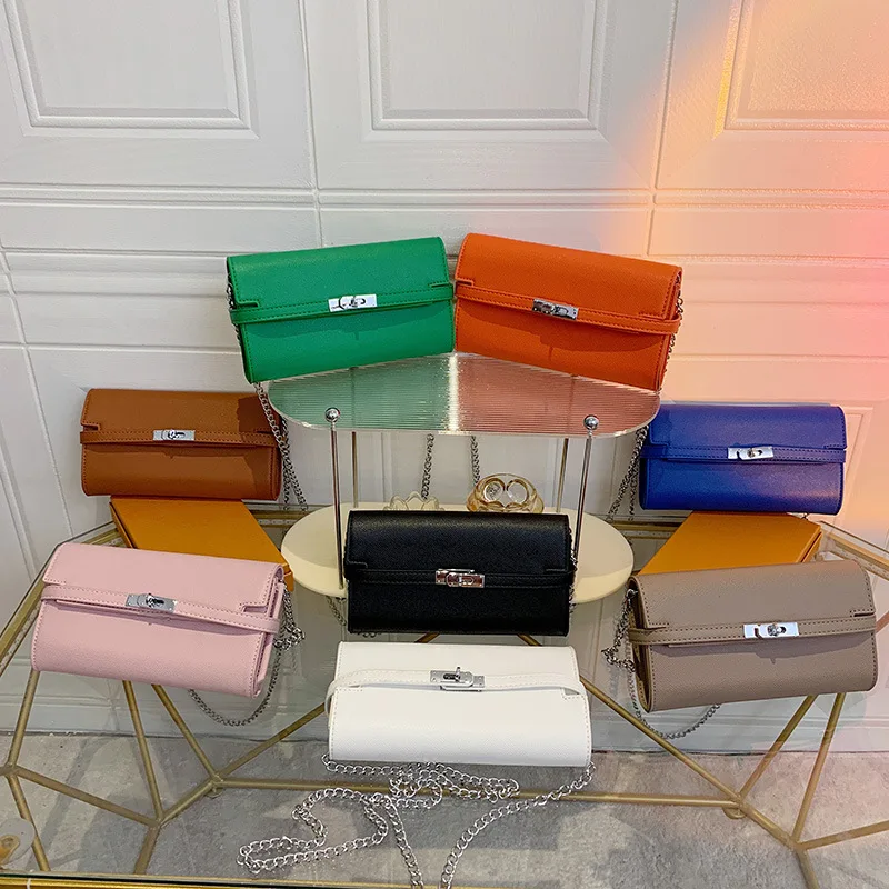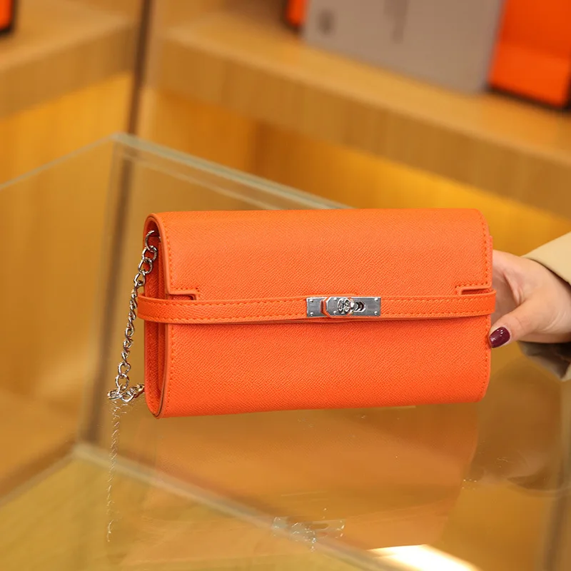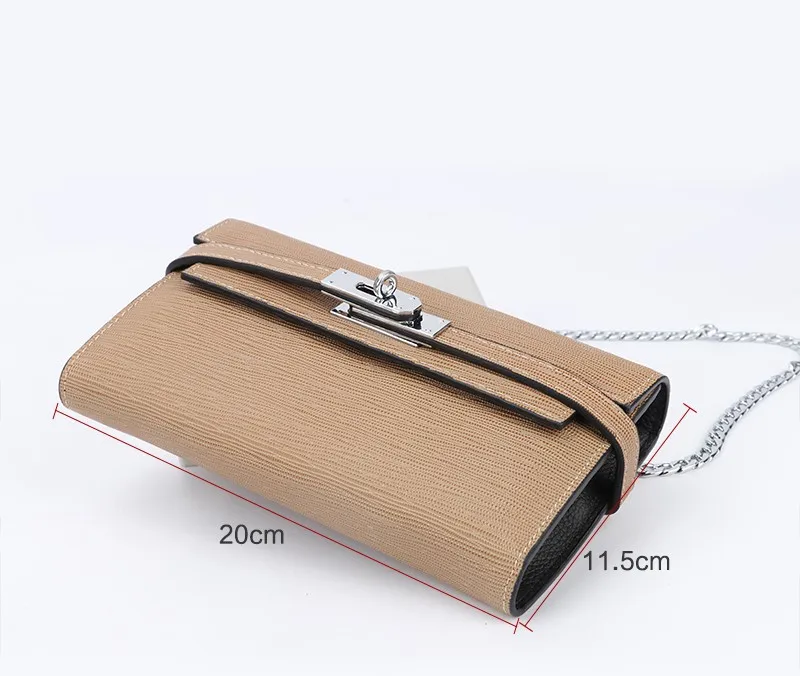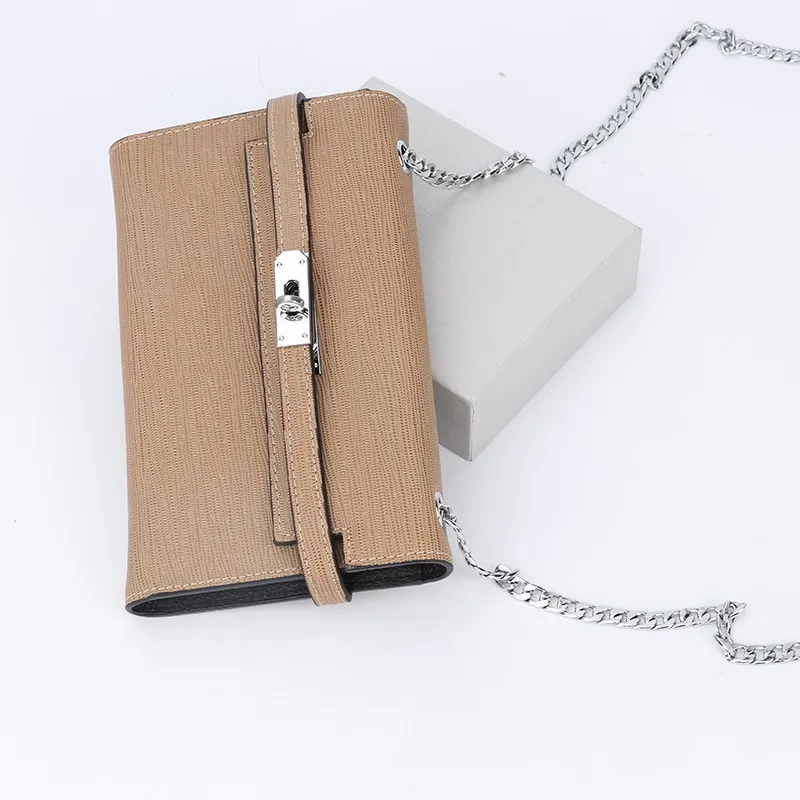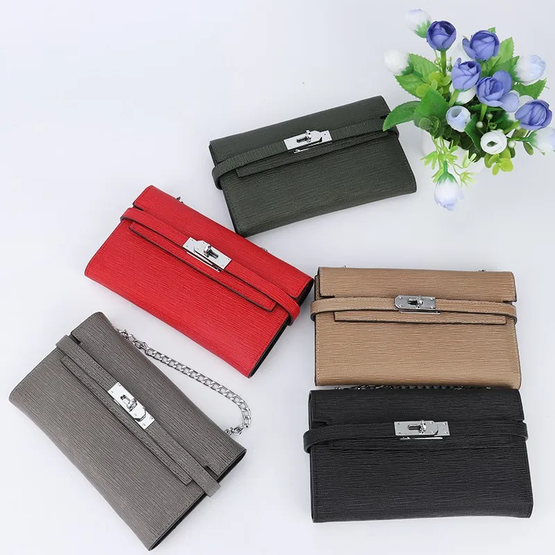 Vintage Brand Design Women Wallet Female Purse 100% Genuine Leather Gold Chain Clutch Bag Luxury Water Ripple Texture