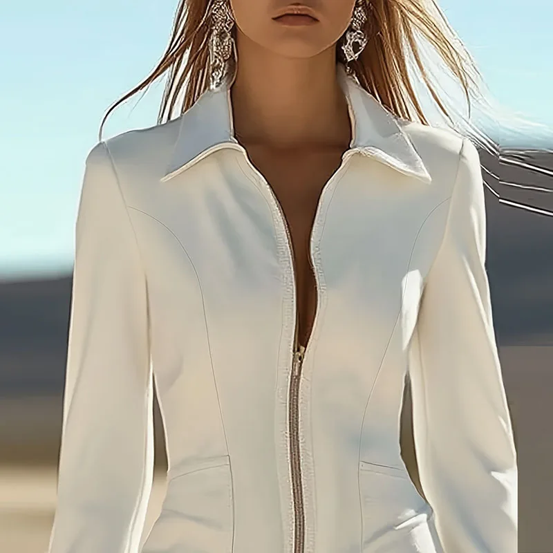 Vintage Clothes Woman Elegant Turn-down Collar Zipper Slim Tassel Dress 2026 Spring Fashion Solid Suede Long Sleeve Boho Dresses