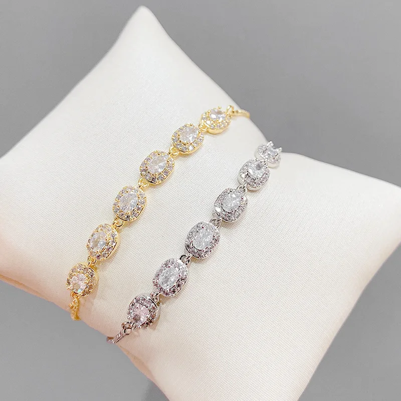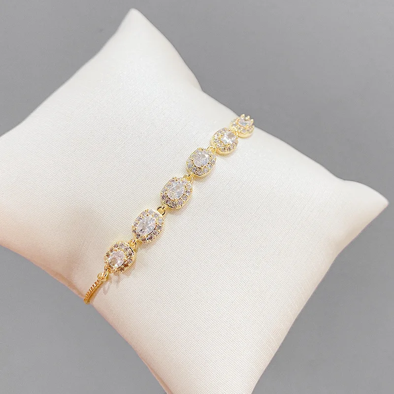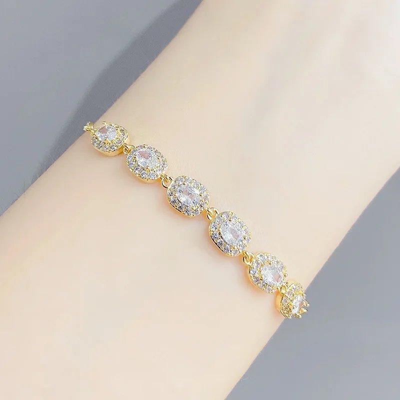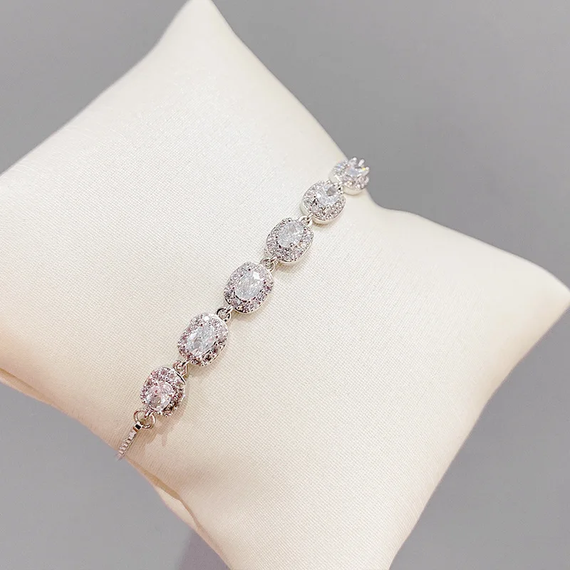 Vintage Fashion Crystal Inlaid Zircon Flower Bracelet for Women Elegant Charm Engagement Banquet Jewelry