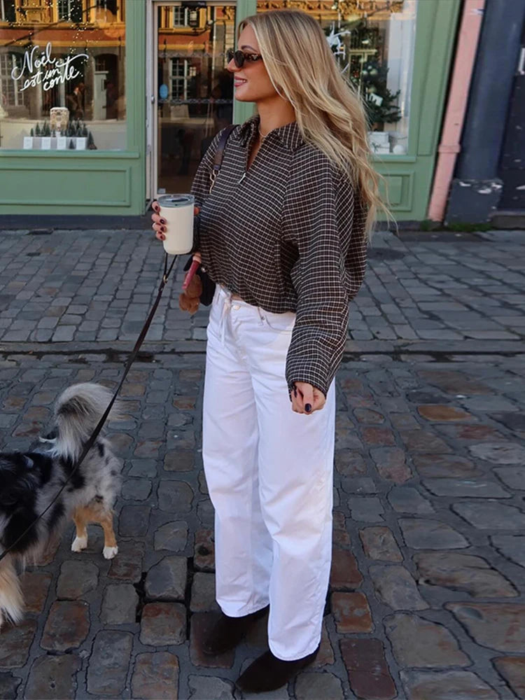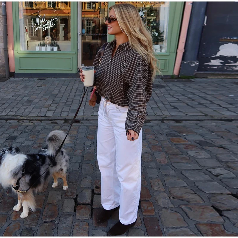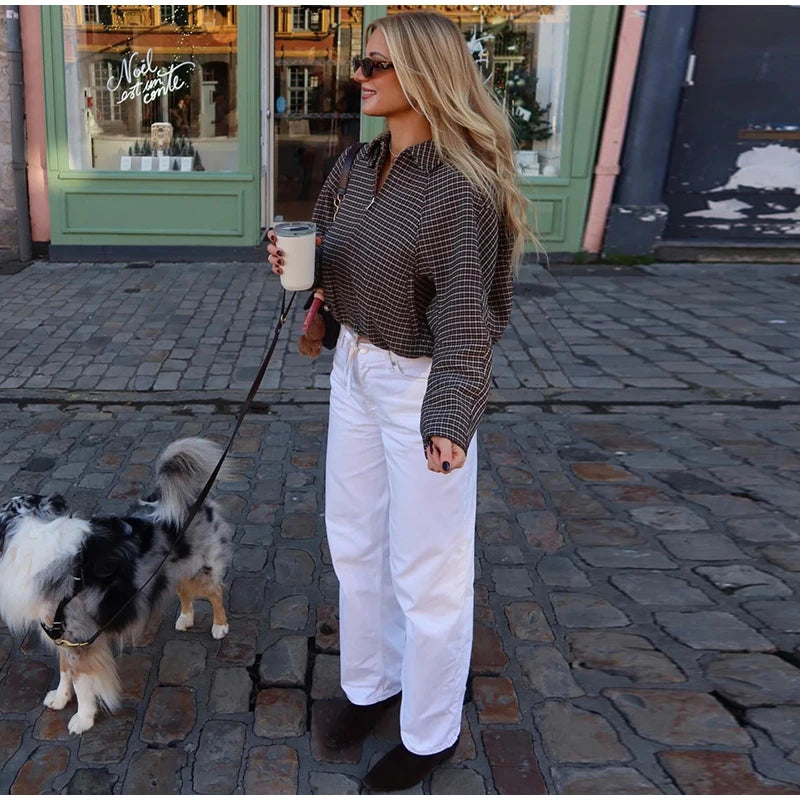 - 🧩 Retro houndstooth pattern: Timeless brown-and-black check design adds vintage charm to everyday looks