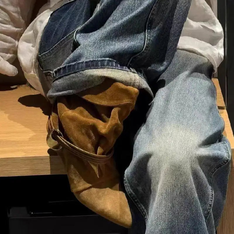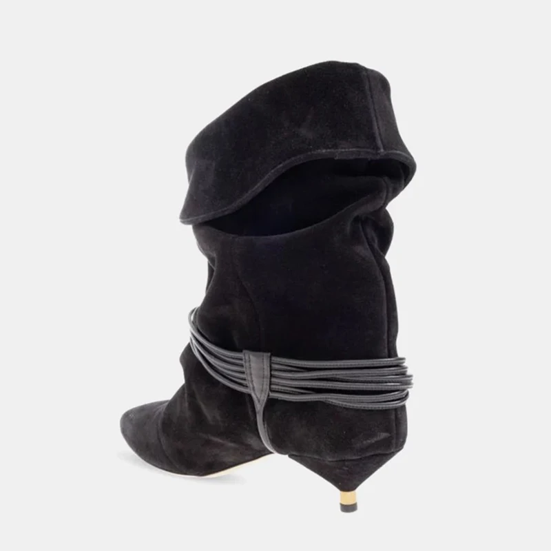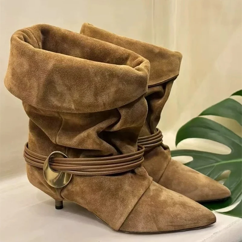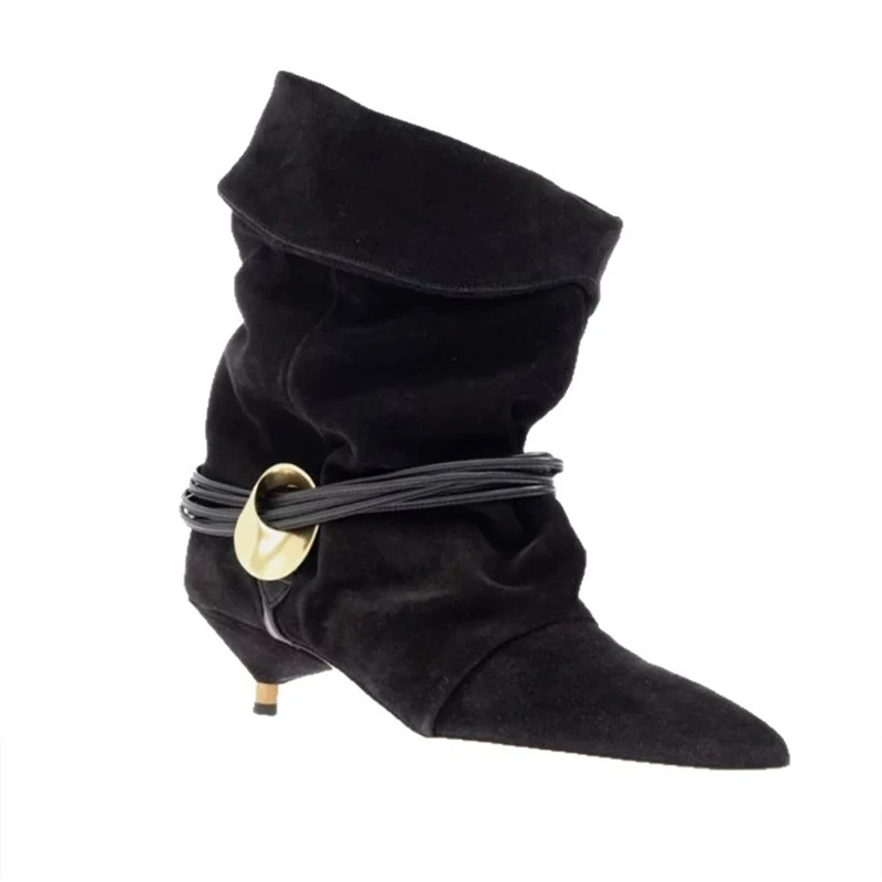 Vintage Stiletto Low Heel Boots Women's Fashion Brand Pleated Ankle Boots Brown Pointed High-end Texture New Cowboy Boots Shoes