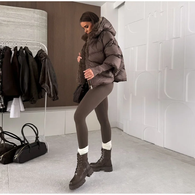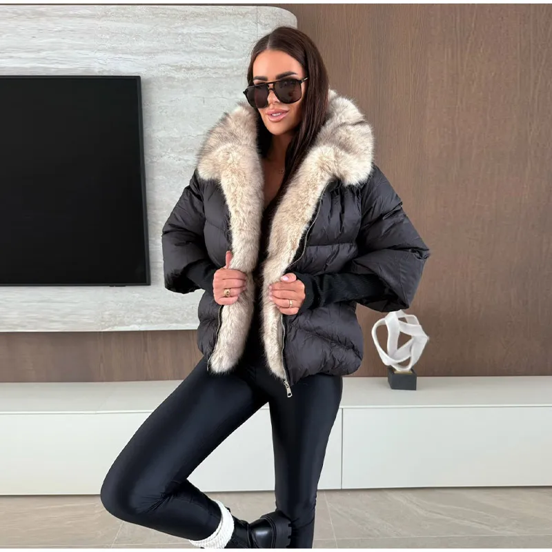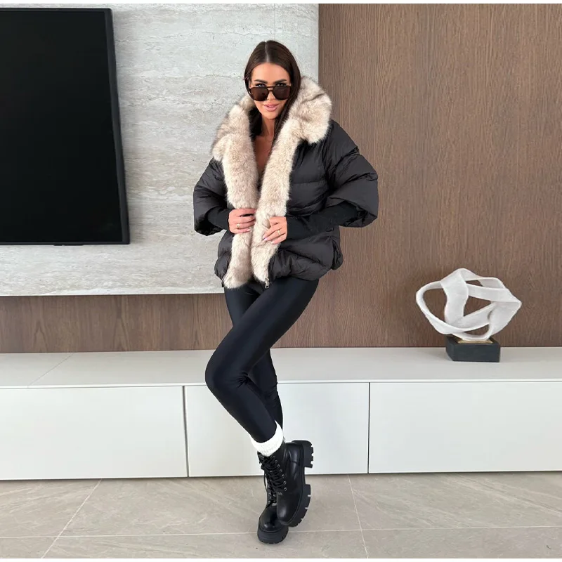 Vintage Women's Fur Coat Elegant Furs Collar Puffer Thicken Full Sleeve Jacket With Furs Female 2025 Autumn Winter Woman Coats