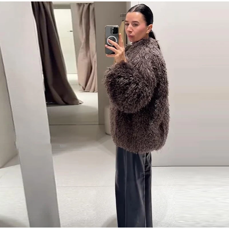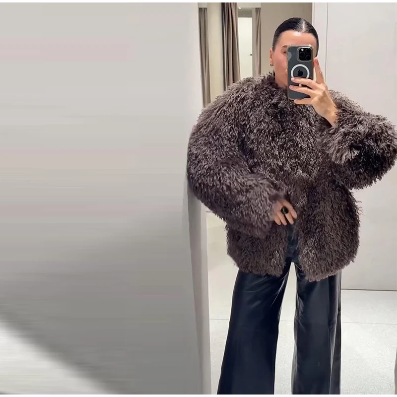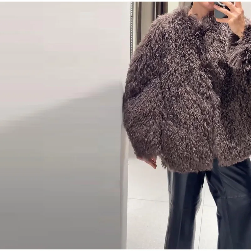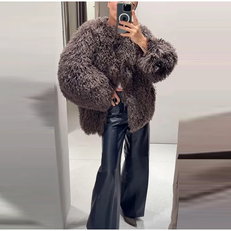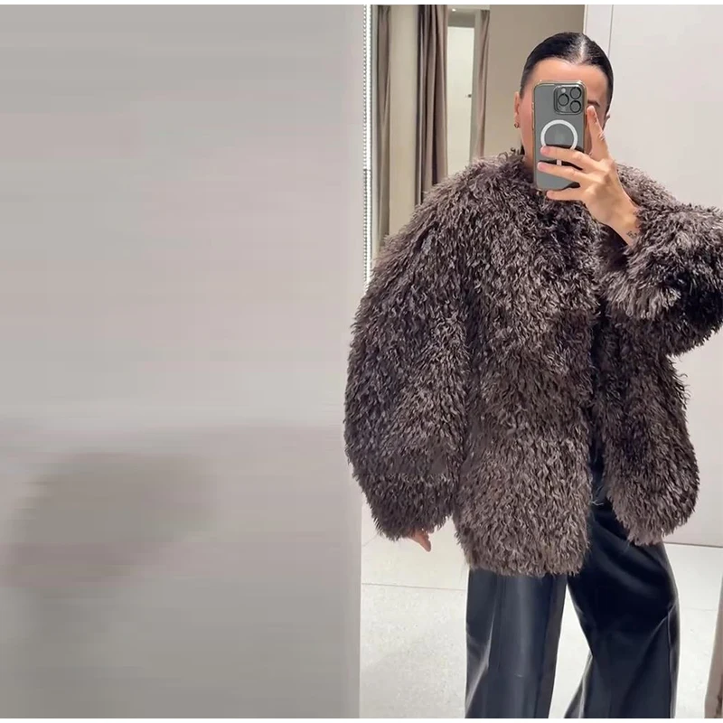 Vintage Women's Fur Coat Elegant Open Collar Thicken Full Sleeve Jacket With Furs Female 2025 New Autumn Winter Woman Clothes