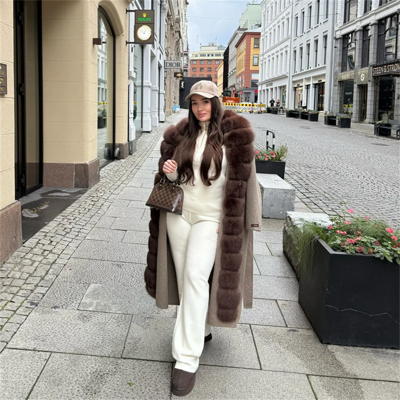 - Luxurious Fox Fur Trim: Elevate your style with this coat featuring opulent fox fur detailing that exudes elegance and warmth.